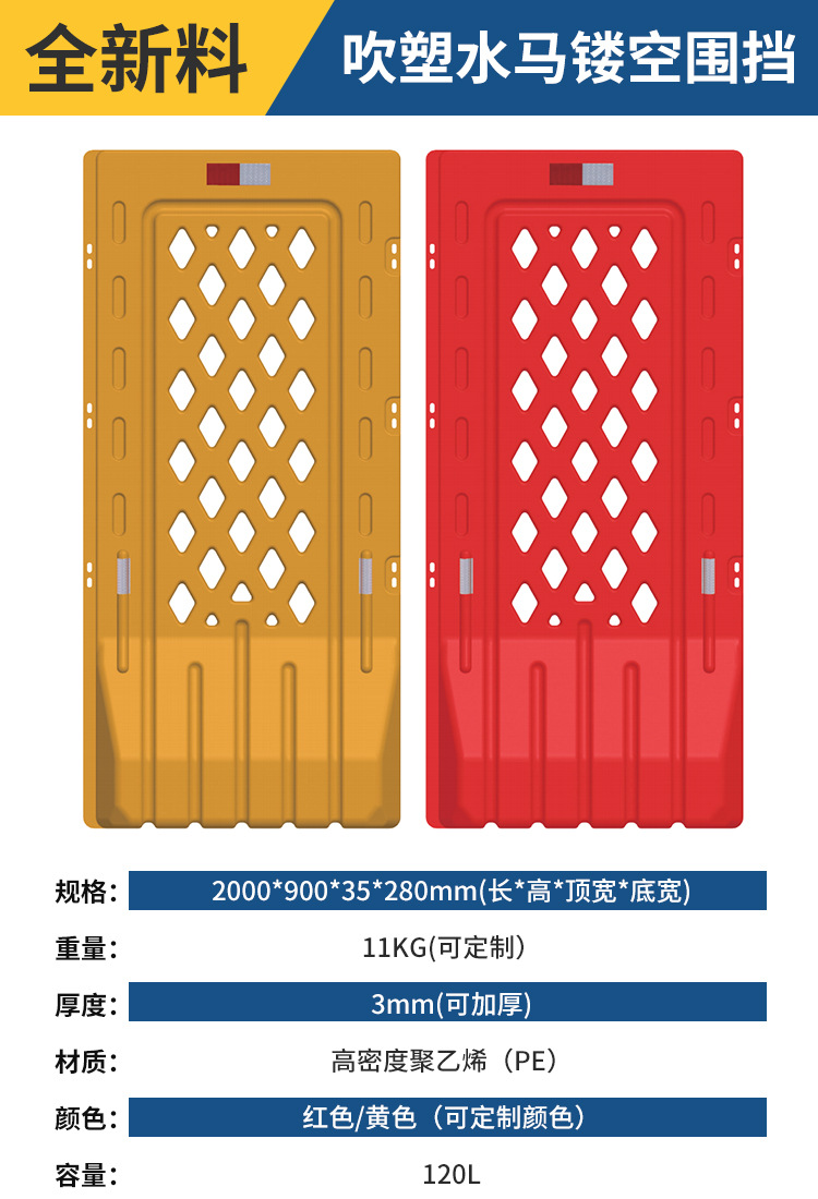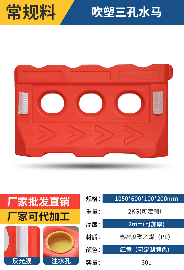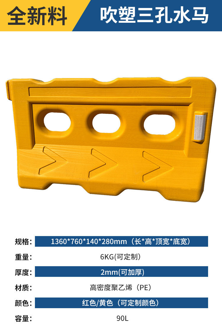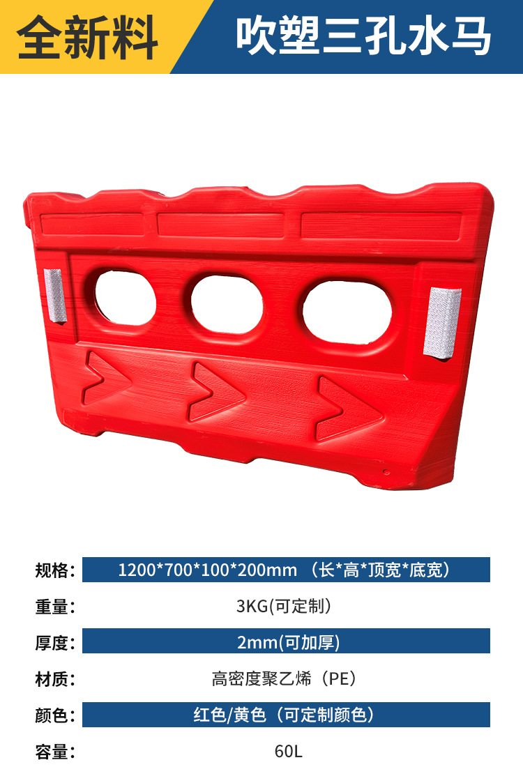 2 베이지 플라스틱 충돌 방지 가드 레일 시영 울타리 공사 콤비네이션 물 주입 인클로저 PE 3 홀 물 말 격리 부두