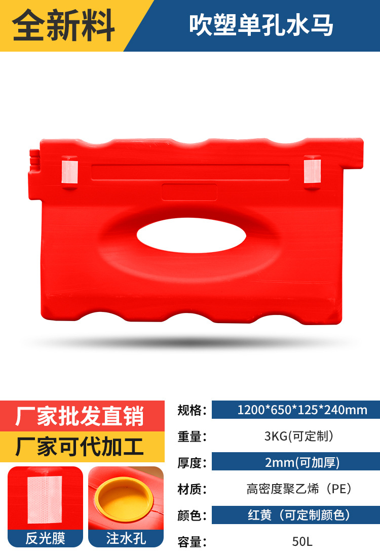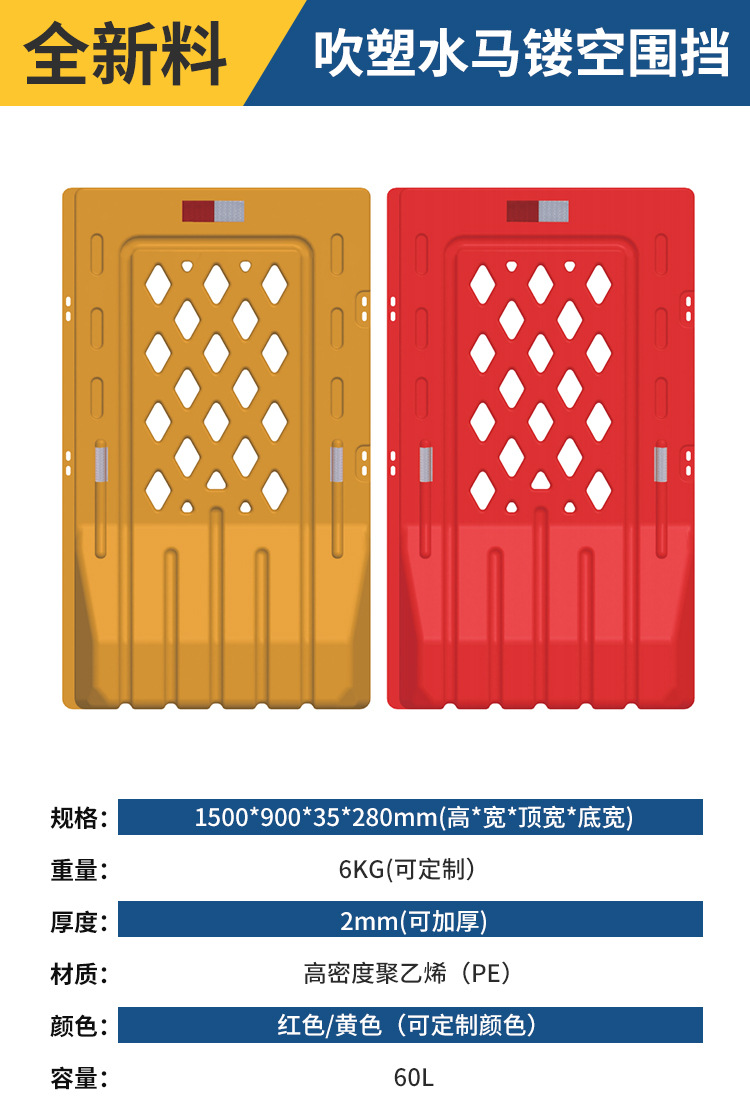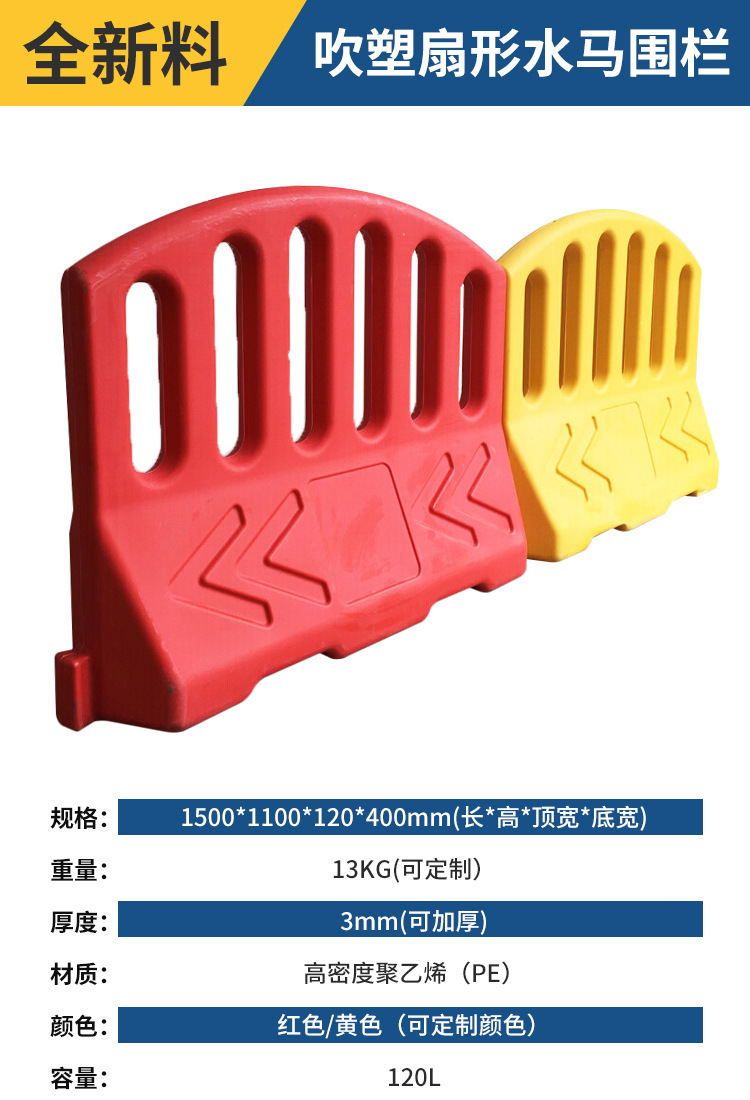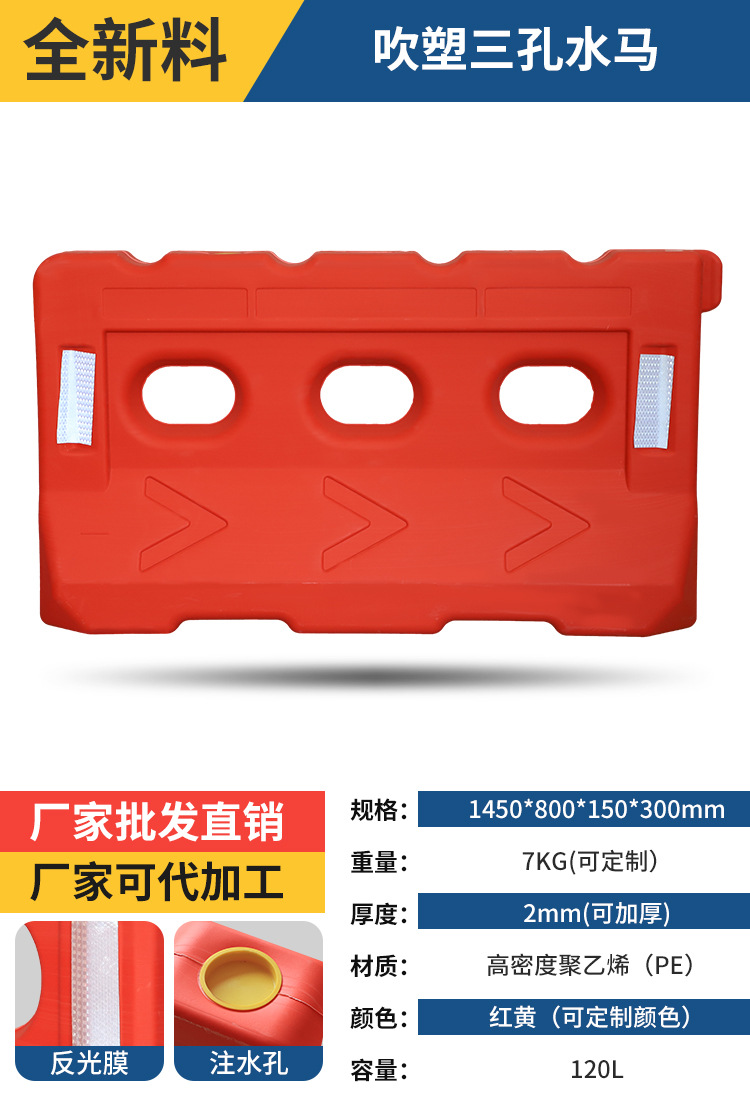 2 베이지 플라스틱 충돌 방지 가드 레일 시영 울타리 공사 콤비네이션 물 주입 인클로저 PE 3 홀 물 말 격리 부두