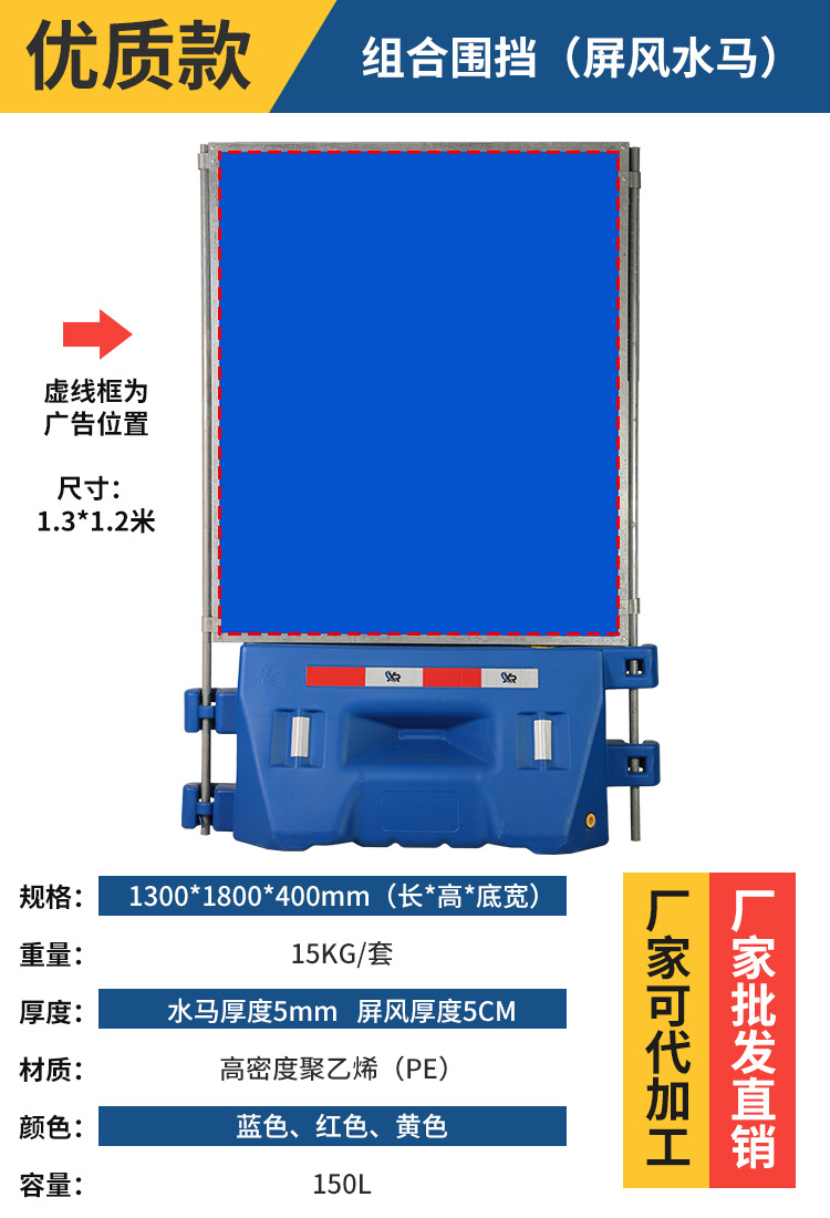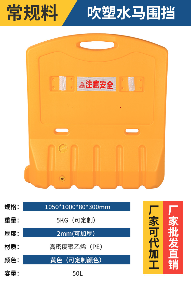 2 베이지 플라스틱 충돌 방지 가드 레일 시영 울타리 공사 콤비네이션 물 주입 인클로저 PE 3 홀 물 말 격리 부두스토어 가기
