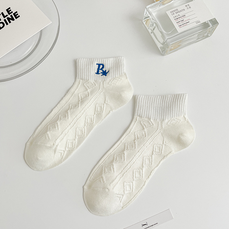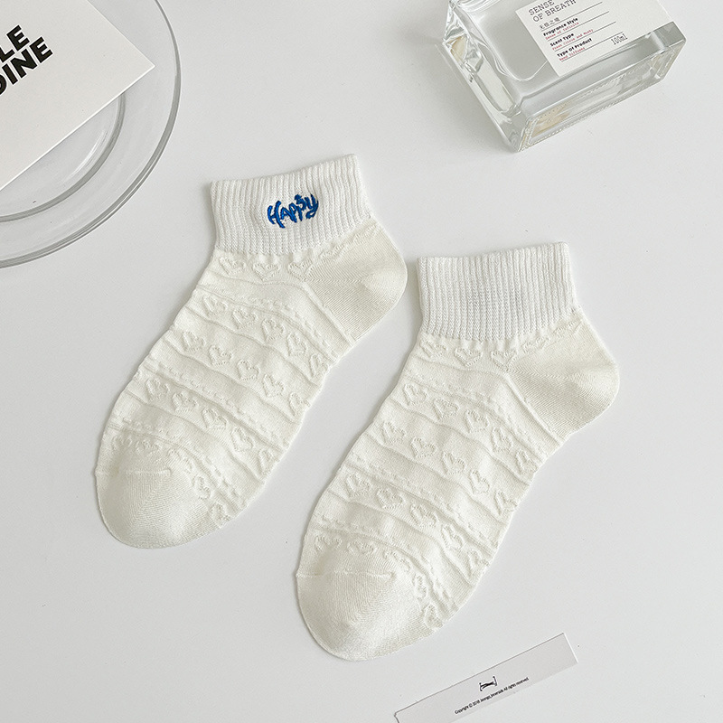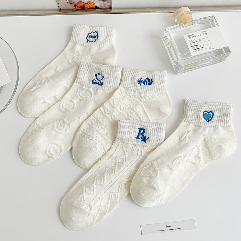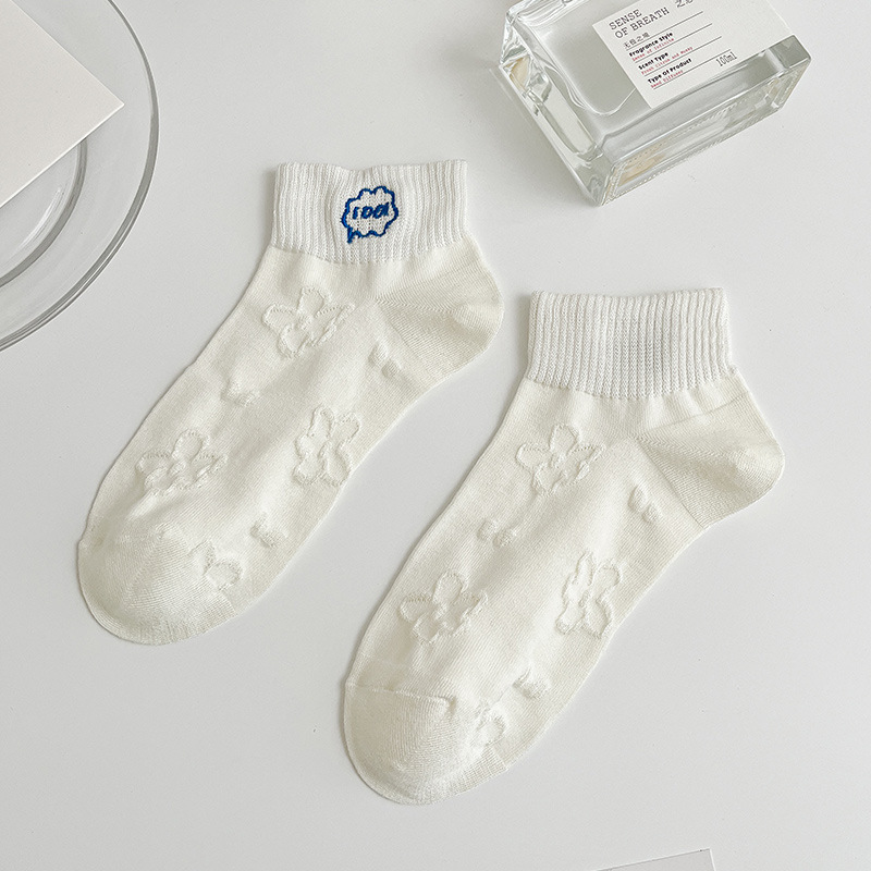 봄과 여름 새 양말 여성용 양말 빗질면 일본 캐주얼 자수 편지 Joker Zhuji 양말 도매스토어 가기