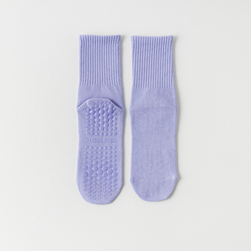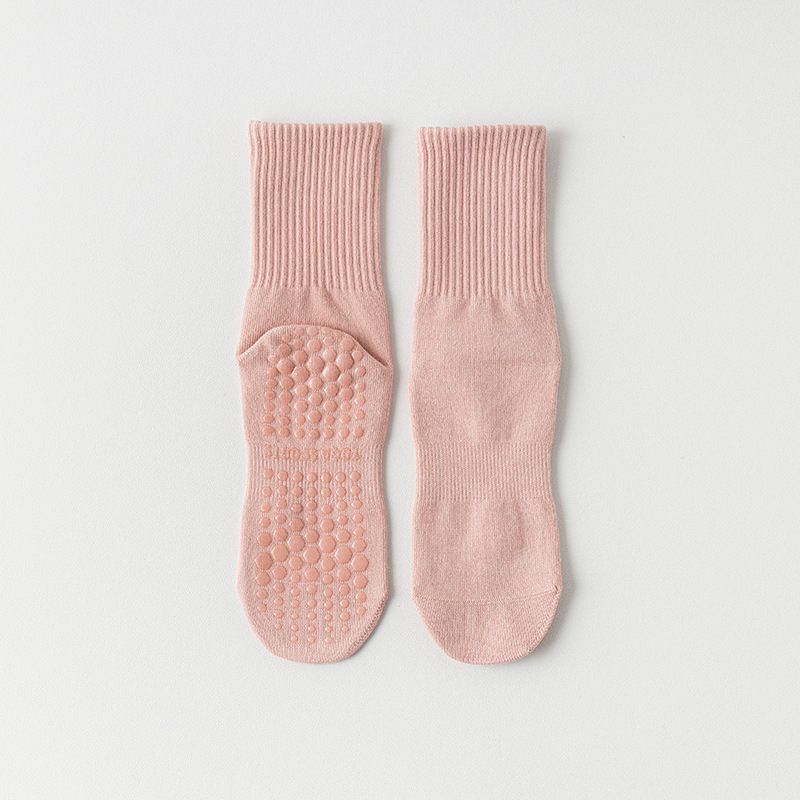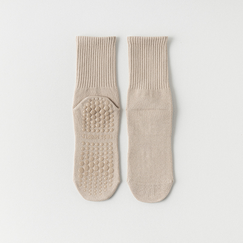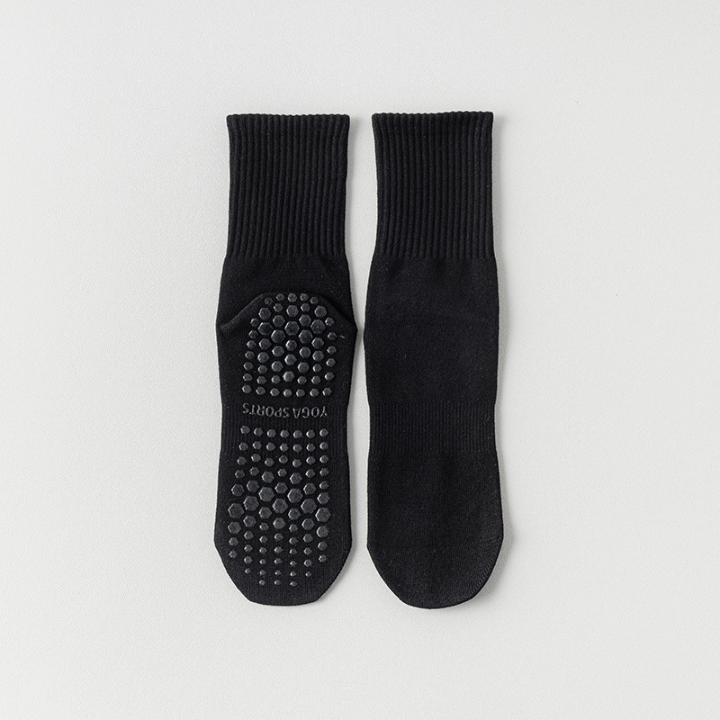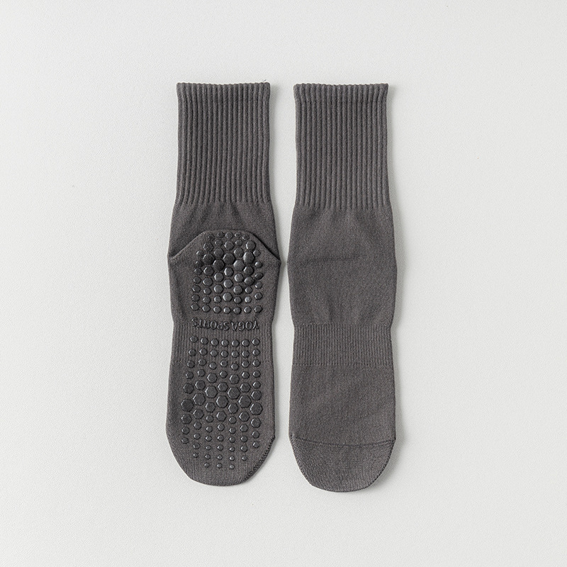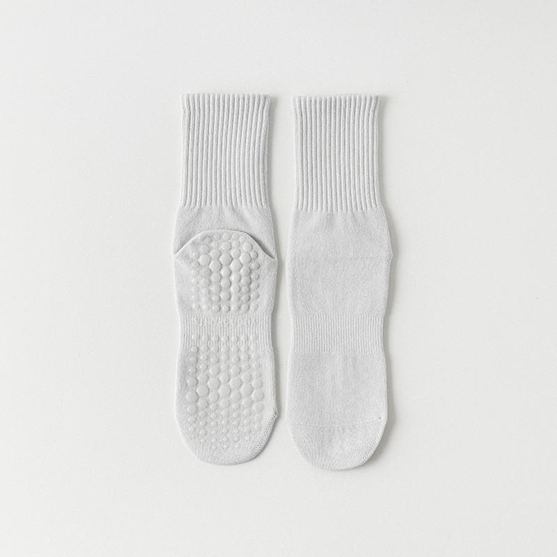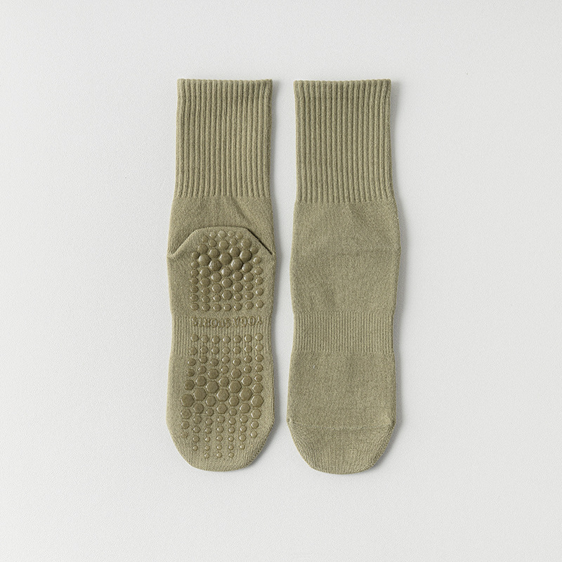 纯色脚底硅胶防滑瑜伽袜子中筒棉袜