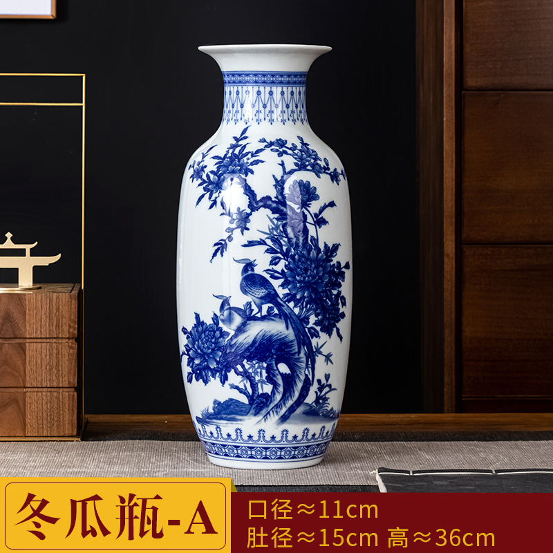 새로운 중국식 Jingdezhen 세라믹 꽃병 거실 장식 수경 꽃꽂이 파란색과 흰색 도자기 장식 TV 캐비닛 와인 캐비닛 장식스토어 가기