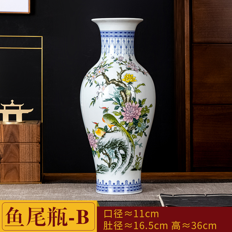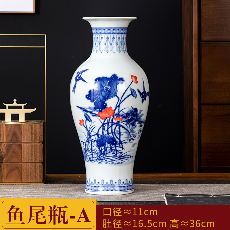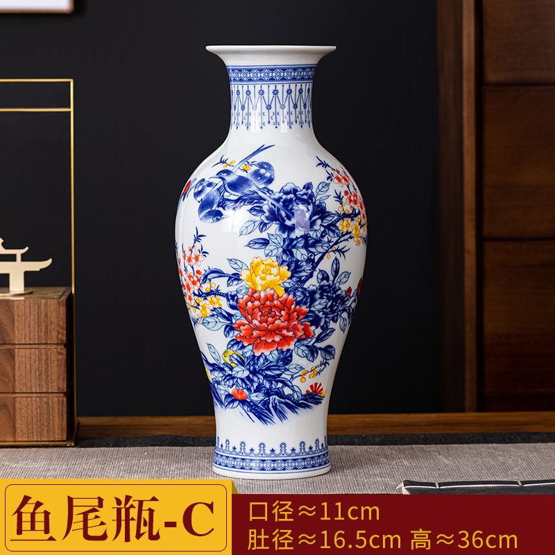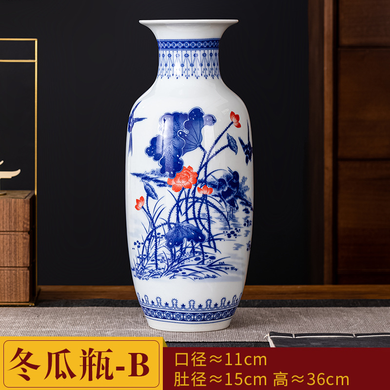 새로운 중국식 Jingdezhen 세라믹 꽃병 거실 장식 수경 꽃꽂이 파란색과 흰색 도자기 장식 TV 캐비닛 와인 캐비닛 장식