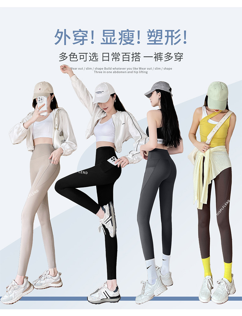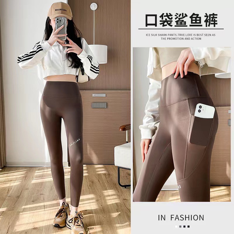 포켓 상어 바지 여성의 겉옷 여름 얇은 하이 웨이스트 엉덩이 리프팅 배꼽 요가 바비 승마 레깅스 봄과 가을스토어 가기
