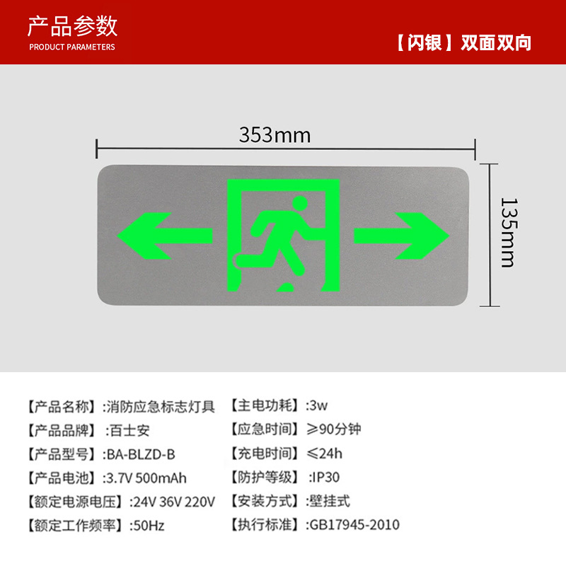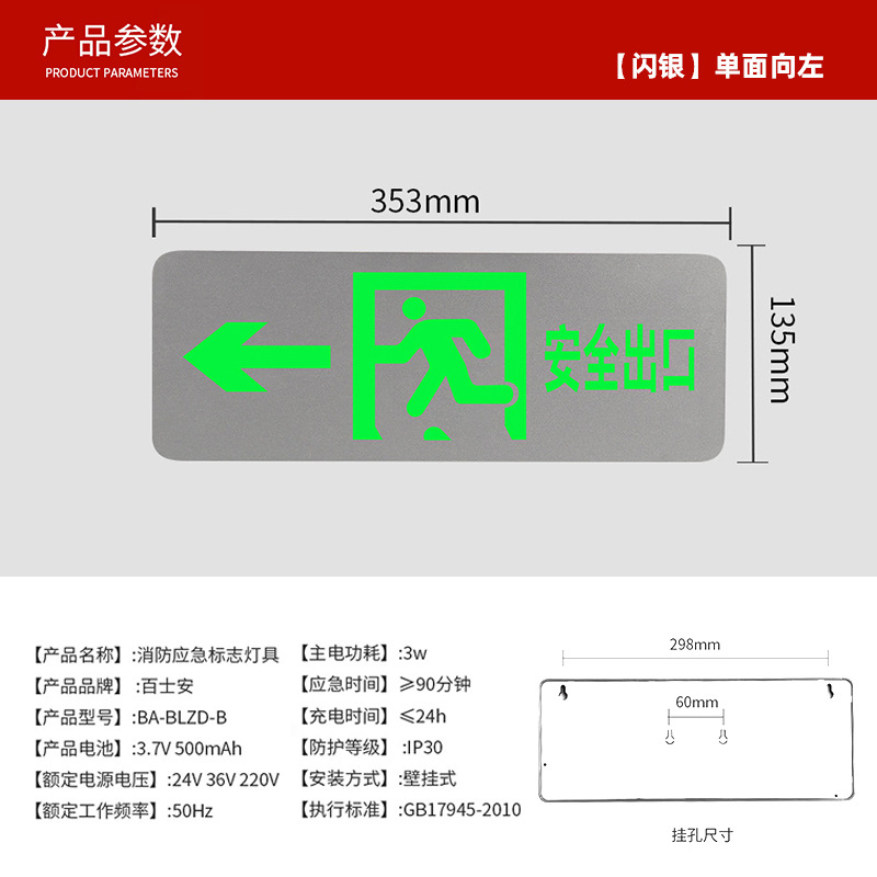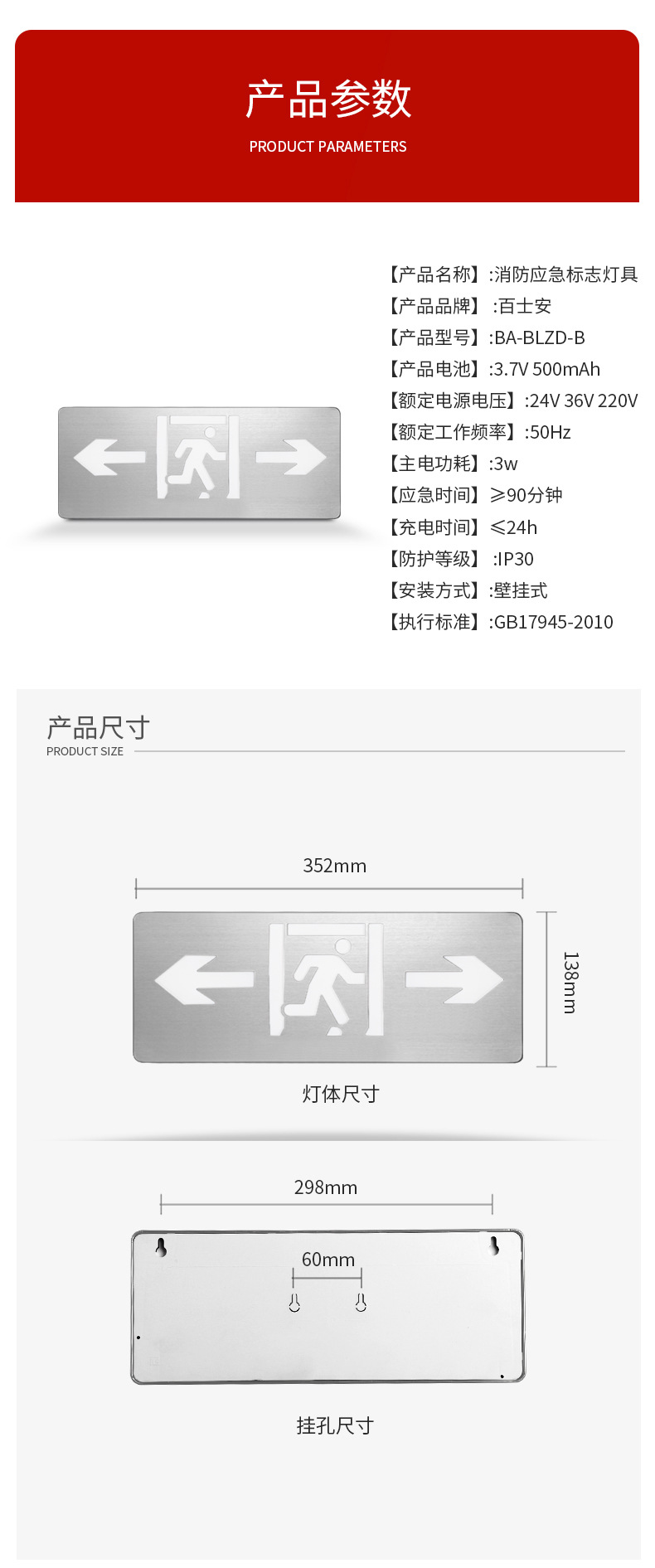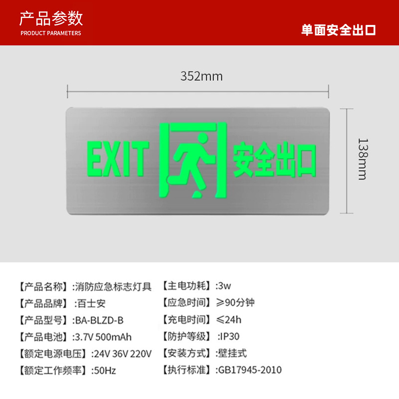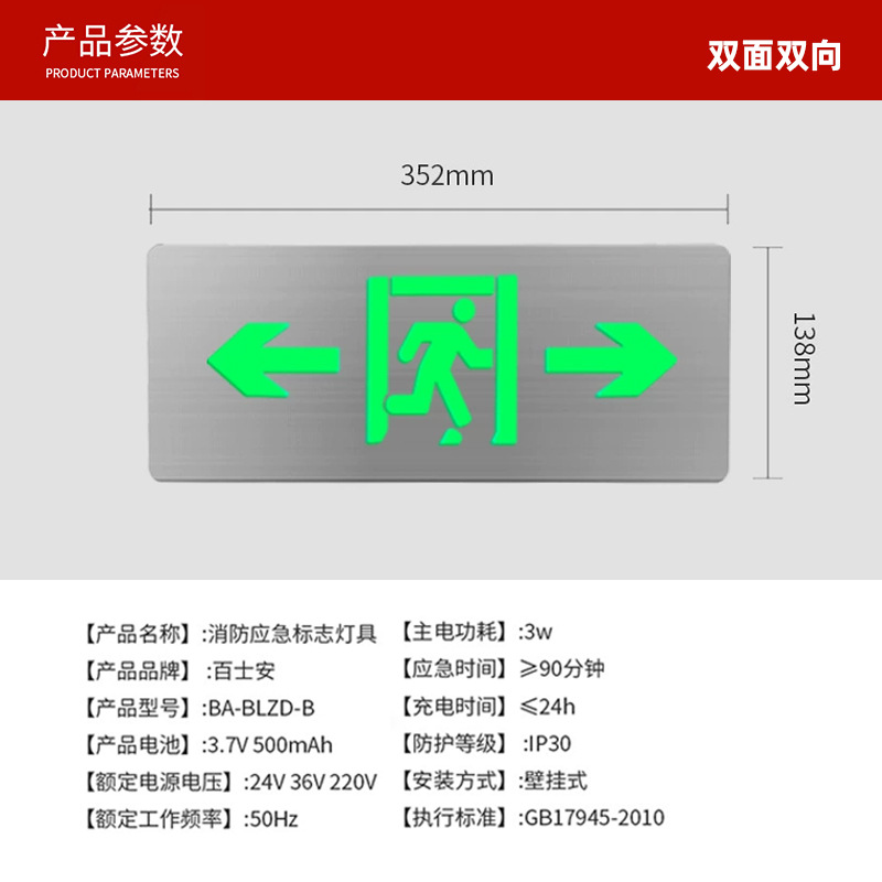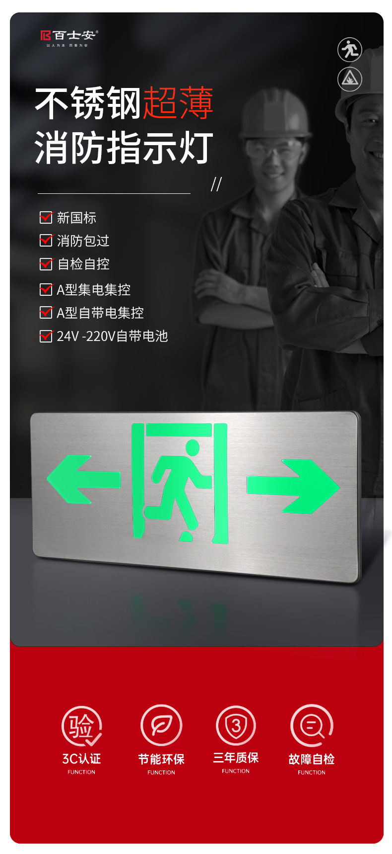 Baishian A형 스테인레스 스틸 초박형 화재 비상 표시등 바닥 통로 안전 출구 대피 표시등스토어 가기