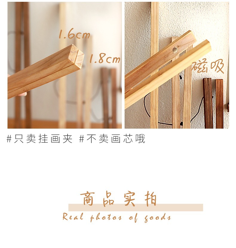 단단한 나무 마그네틱 매달려 그림 클립 포스터 클립 사진 프레임 테두리 스트립 마그네틱 스크롤 코어 클립 시계 상자 나무 그림 프레임스토어 가기