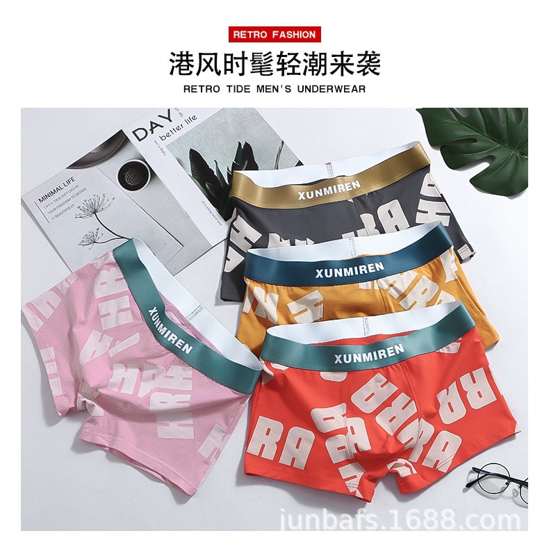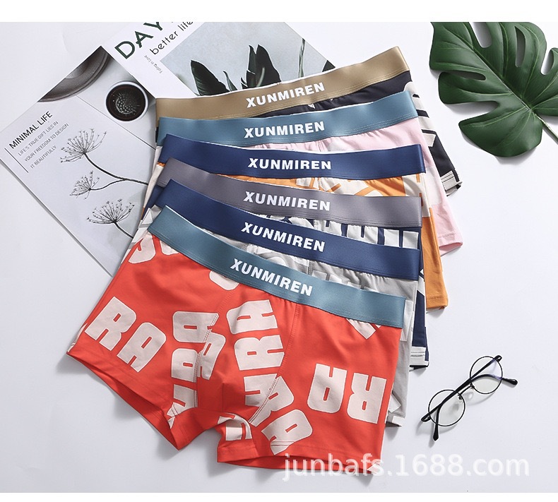 남성 속옷 순면 복서 개인화 된 유행 남성 유행 인쇄 미드 웨이스트 복서 바지 남성용 편안한 통기성 짧은 바지스토어 가기