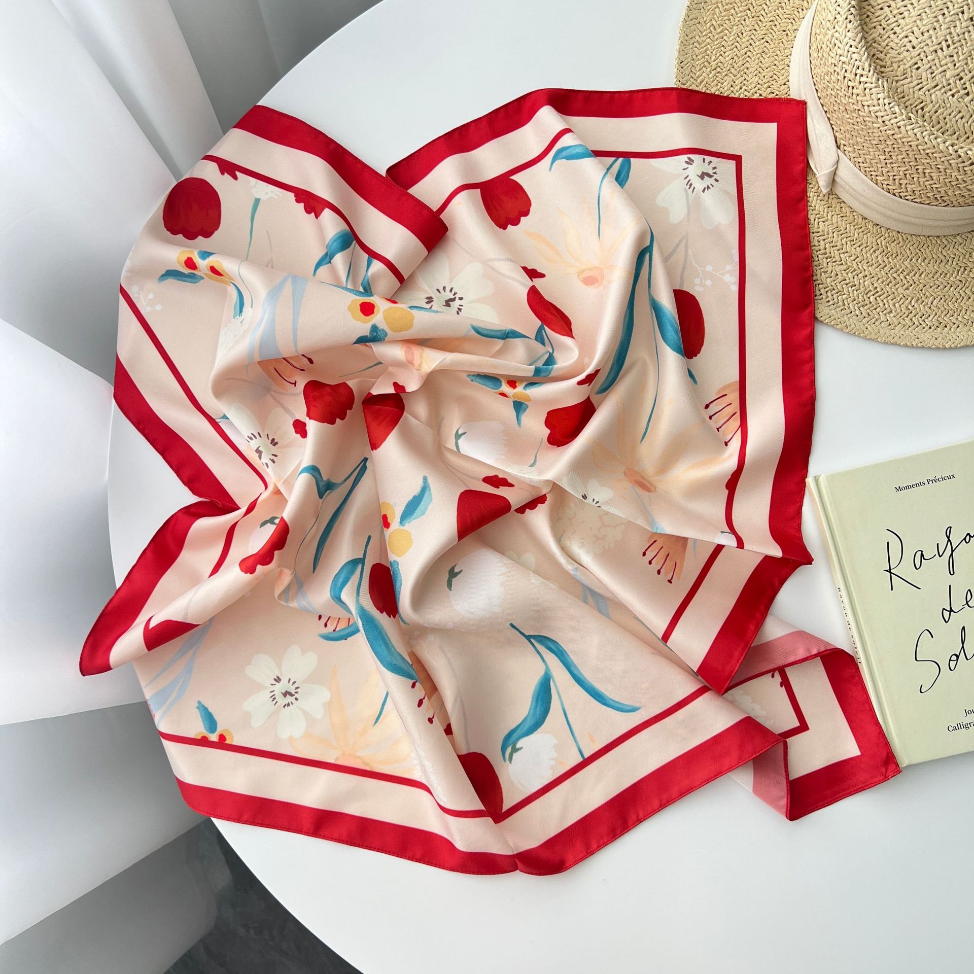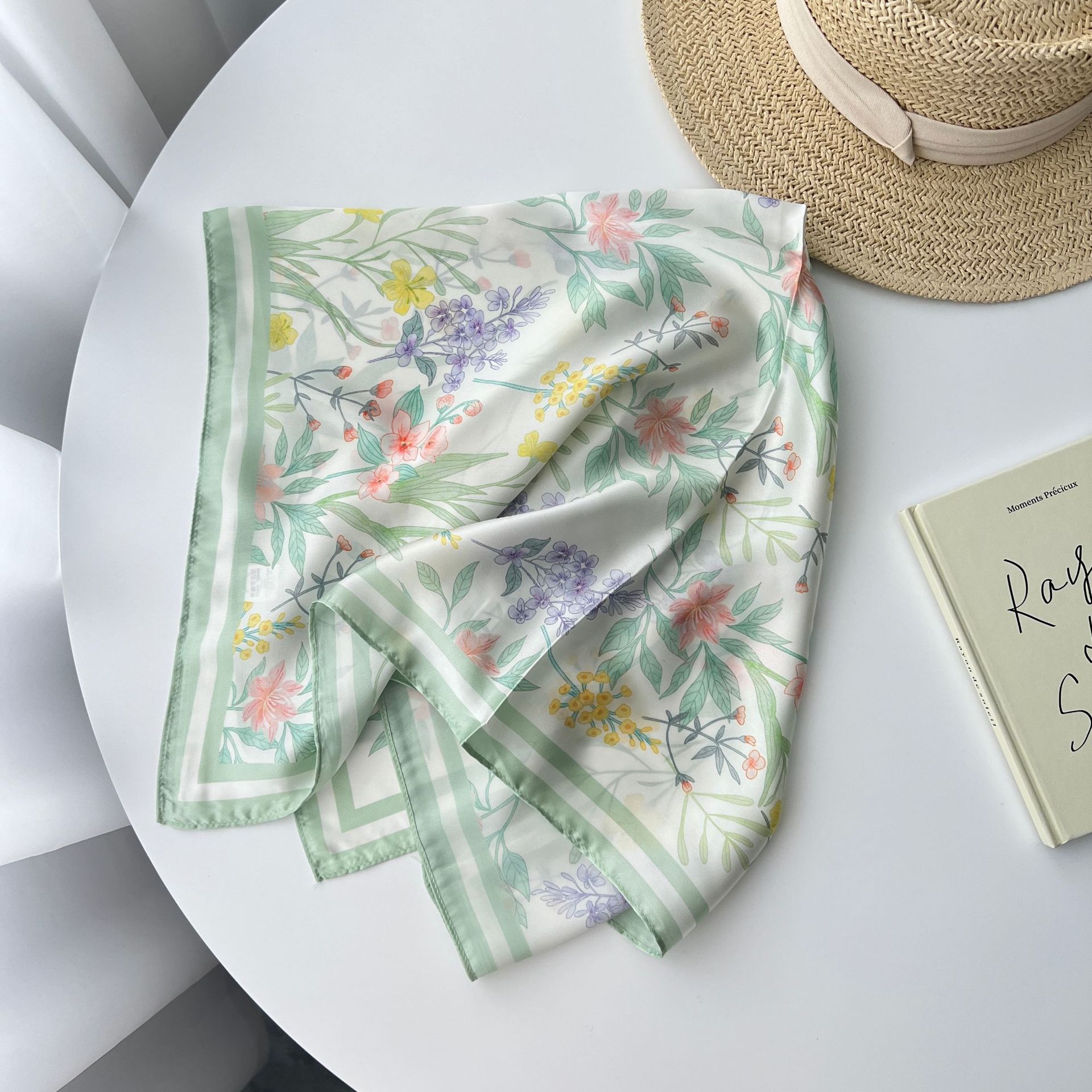프랑스 분위기 부드러운 실크 스카프 스퀘어 스카프 만화 끈이없는 머리띠 여아 여행 휴일 피크닉 스카프 한국 스카프