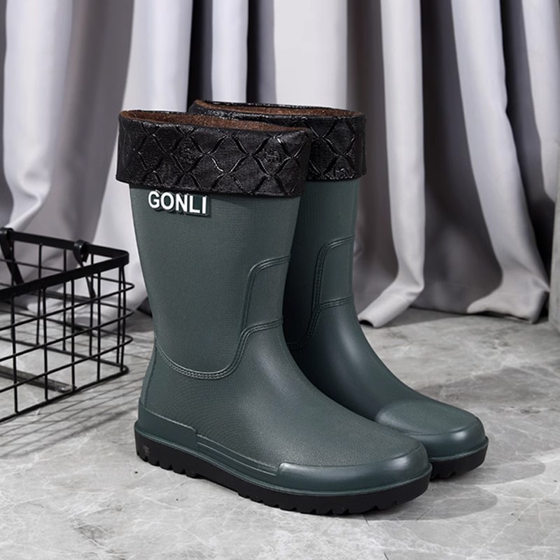 남성용 레인 부츠 테이크 아웃 특수 미드 배럴 방수 미끄럼 방지 워터 슈즈 내마모성 새 버킷 고무 신발 플랫 낚시 레인 부츠