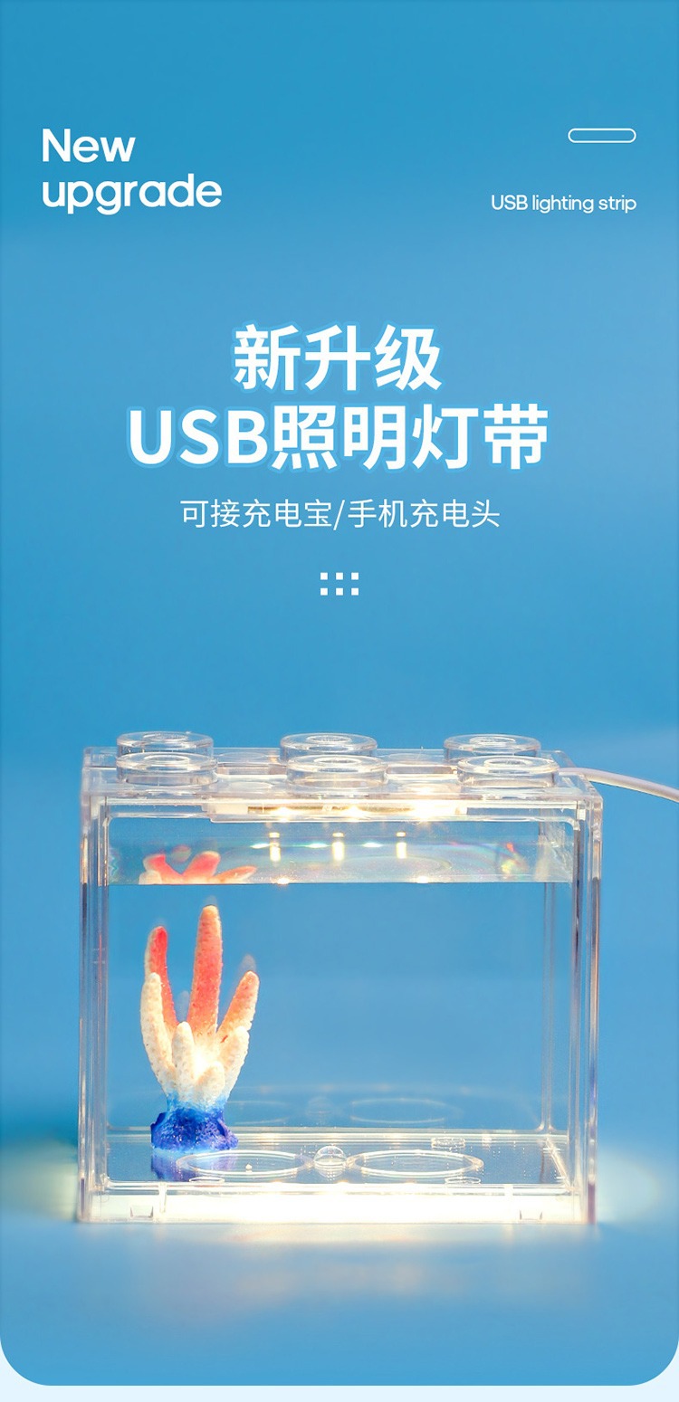 버킷 어항 빌딩 블록 어항 램프 조명 램프가있는 LED 램프 마이크로 풍경 조류 탱크 조류 폭발 램프 스포트라이트를위한 특수 USB 인터페이스스토어 가기