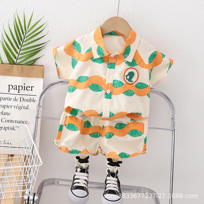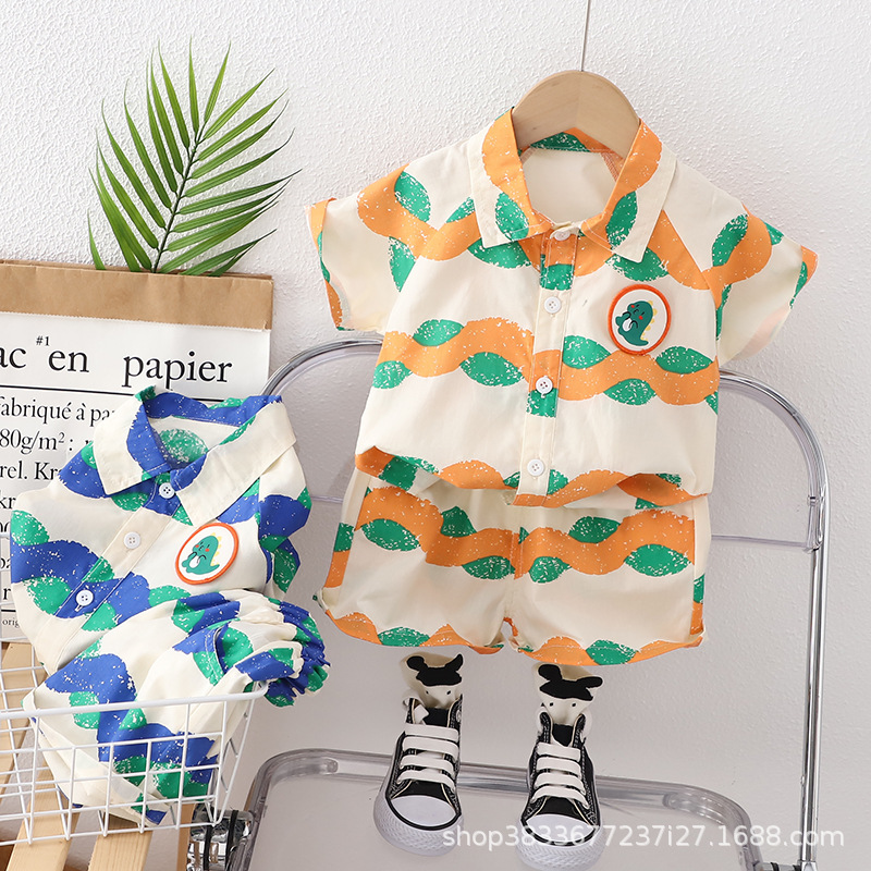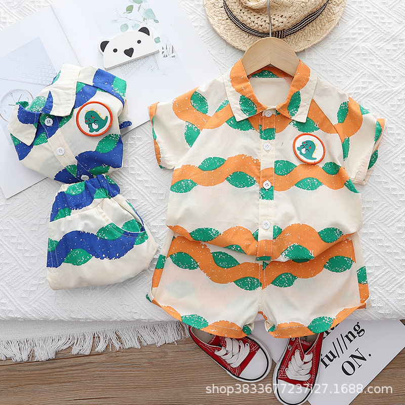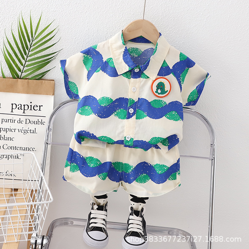 아동복 소년 여름 세트 서양식 한국 반팔 셔츠 새로운 2 피스 작은 아동 아기 옷 도매