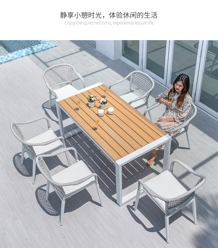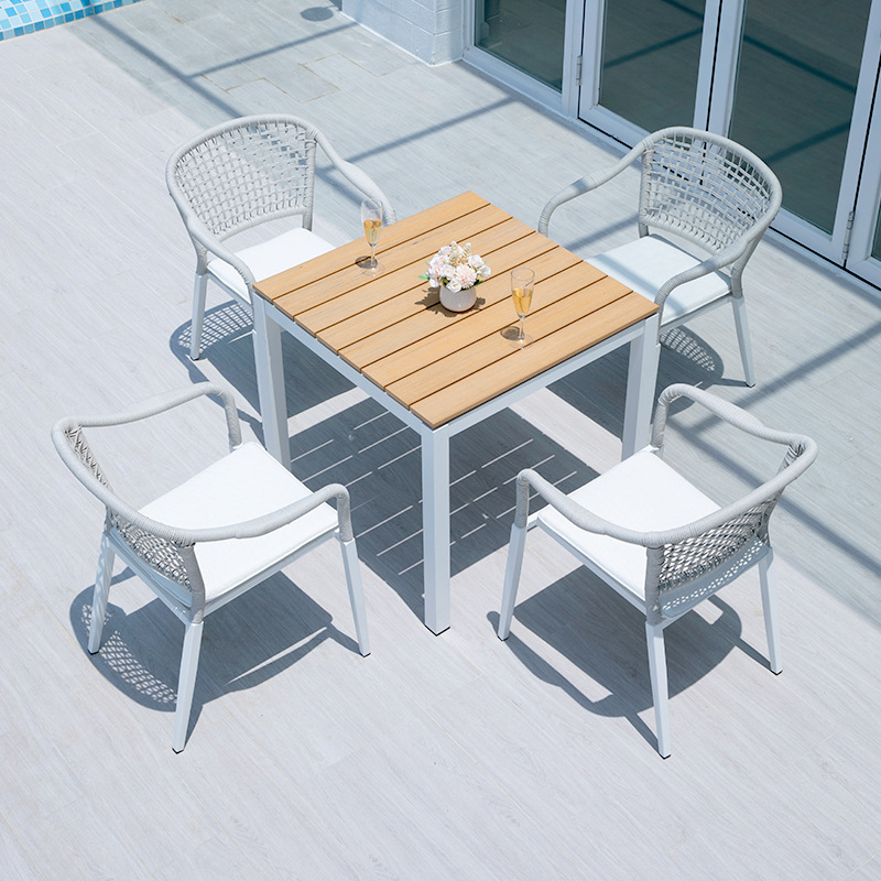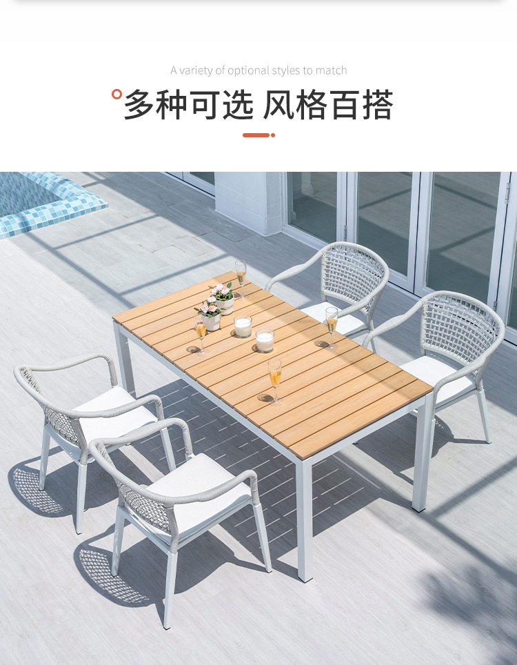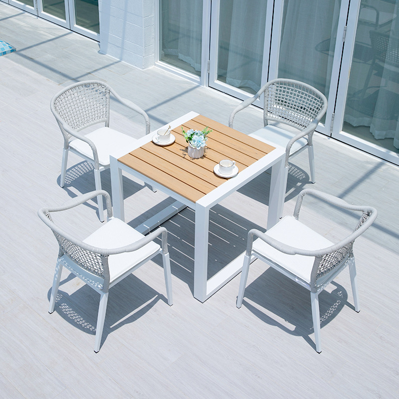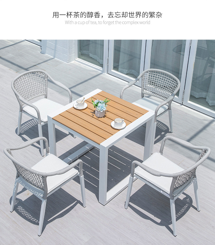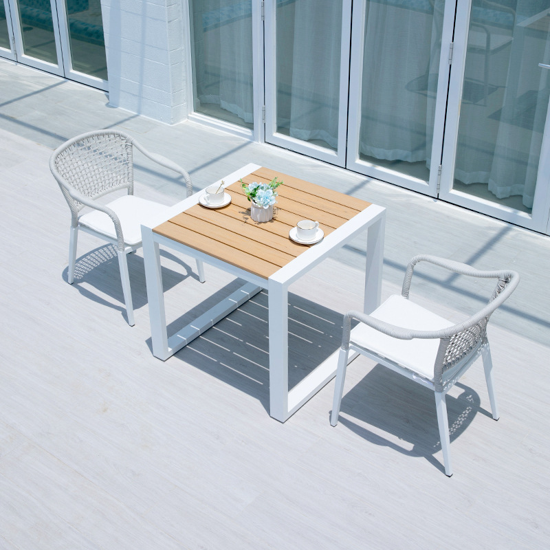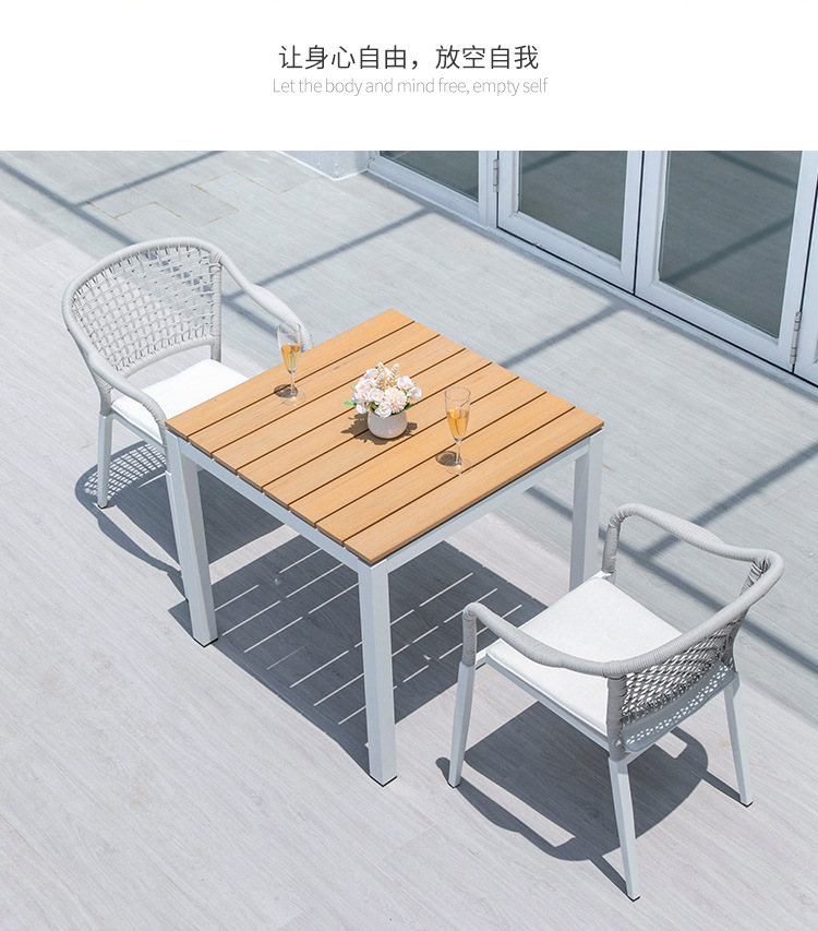 야외 플라스틱 나무 테이블과 의자 안뜰 야외 빌라 부식 방지 목재 레저 식탁 가정용 등나무 의자 등나무 의자 세트 북유럽스토어 가기