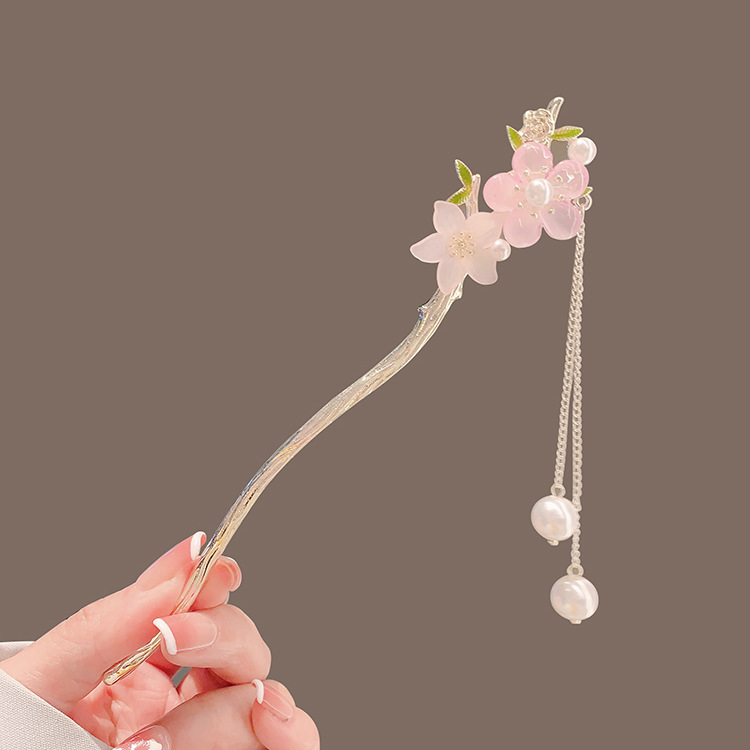 절묘한 복숭아 꽃 술 골동품 머리핀 심플 모던 디스크 헤어 쉐이크 하이 엔드 센스 머리핀 여성용 치파오 한푸 헤어 머리핀스토어 가기