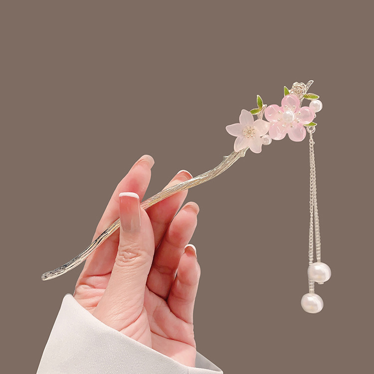 절묘한 복숭아 꽃 술 골동품 머리핀 심플 모던 디스크 헤어 쉐이크 하이 엔드 센스 머리핀 여성용 치파오 한푸 헤어 머리핀