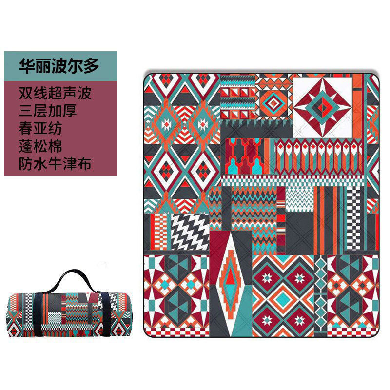 야외 피크닉 매트 방습 매트 두꺼운 기계 빨 텐트 바닥 매트 에스닉 스타일 봄 나들이 휴대용 방수 캠핑 담요