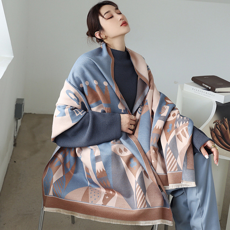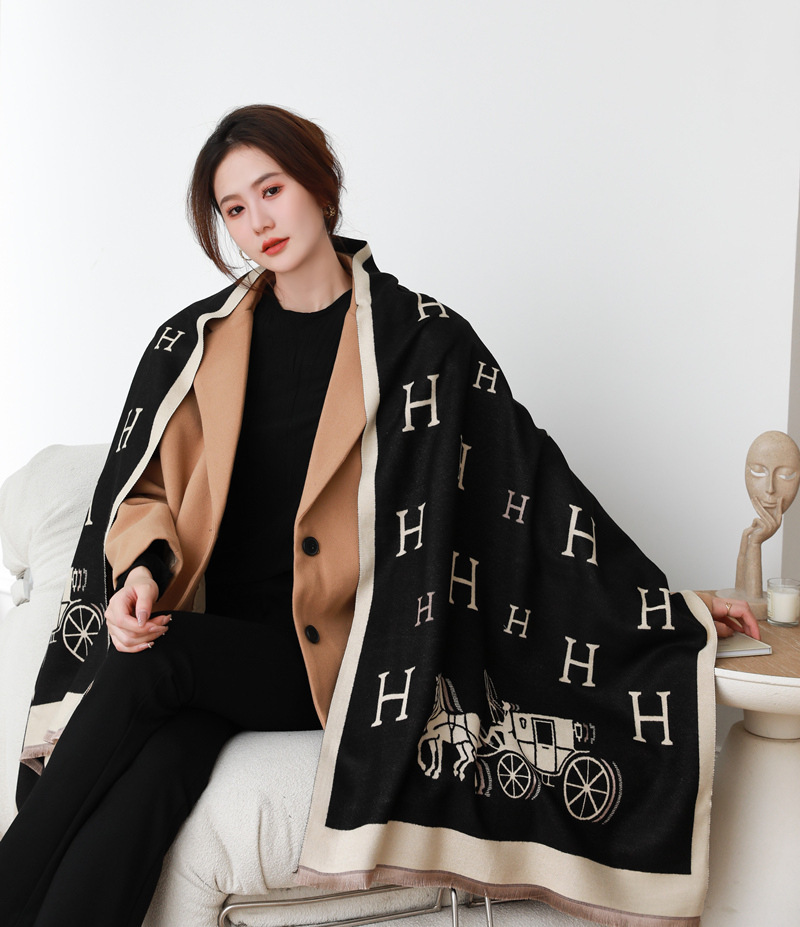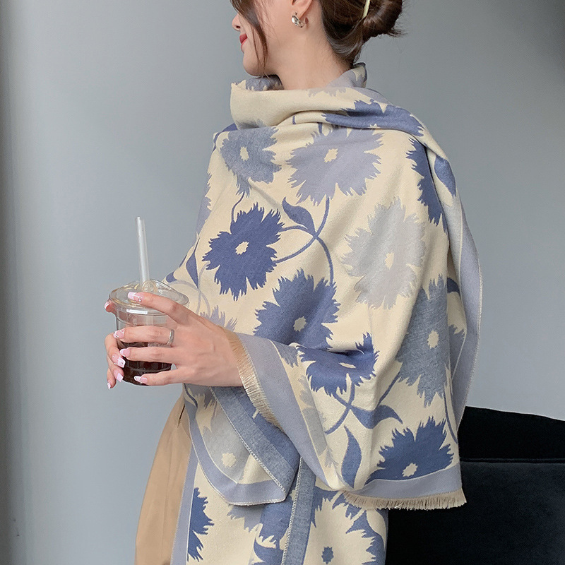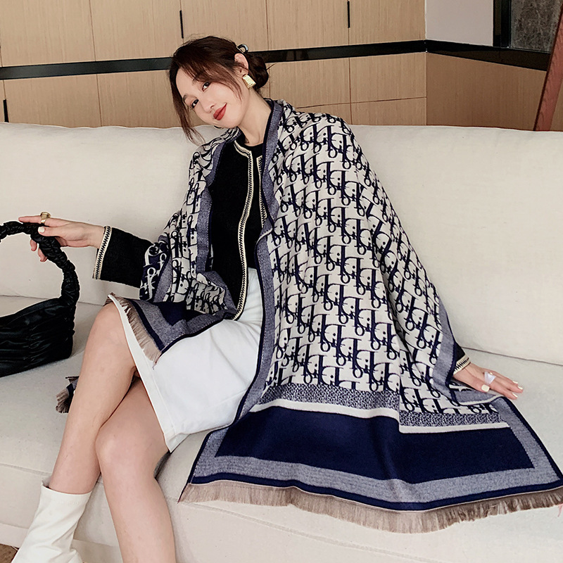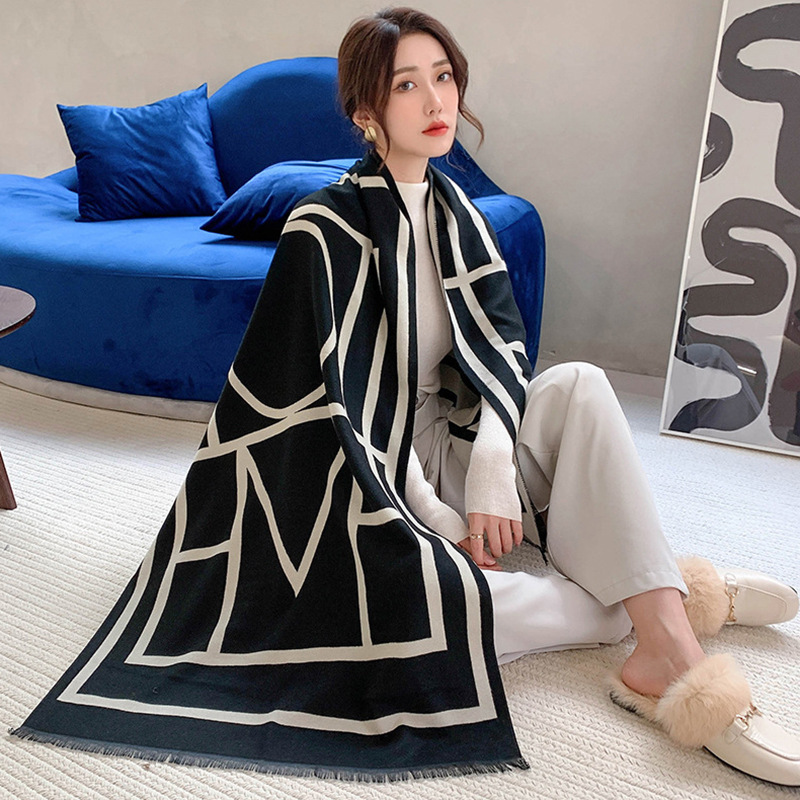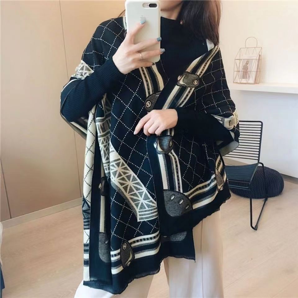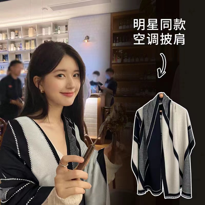 인터넷 연예인 겨울 두꺼운 스카프 여성용 모든 매치 하이 엔드 울 양면 숄 모든 매치 캐시미어 웜 아우터 케이프스토어 가기