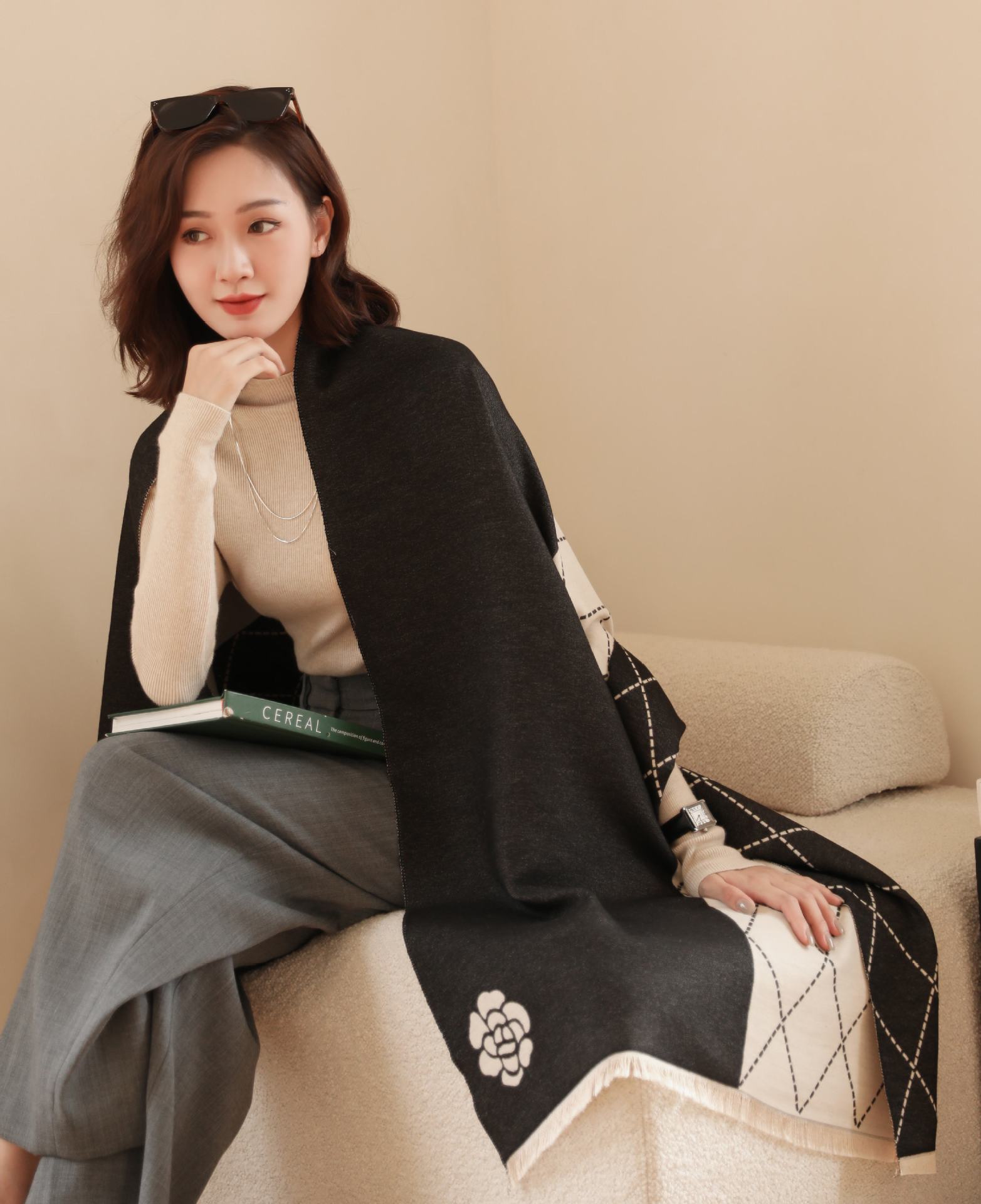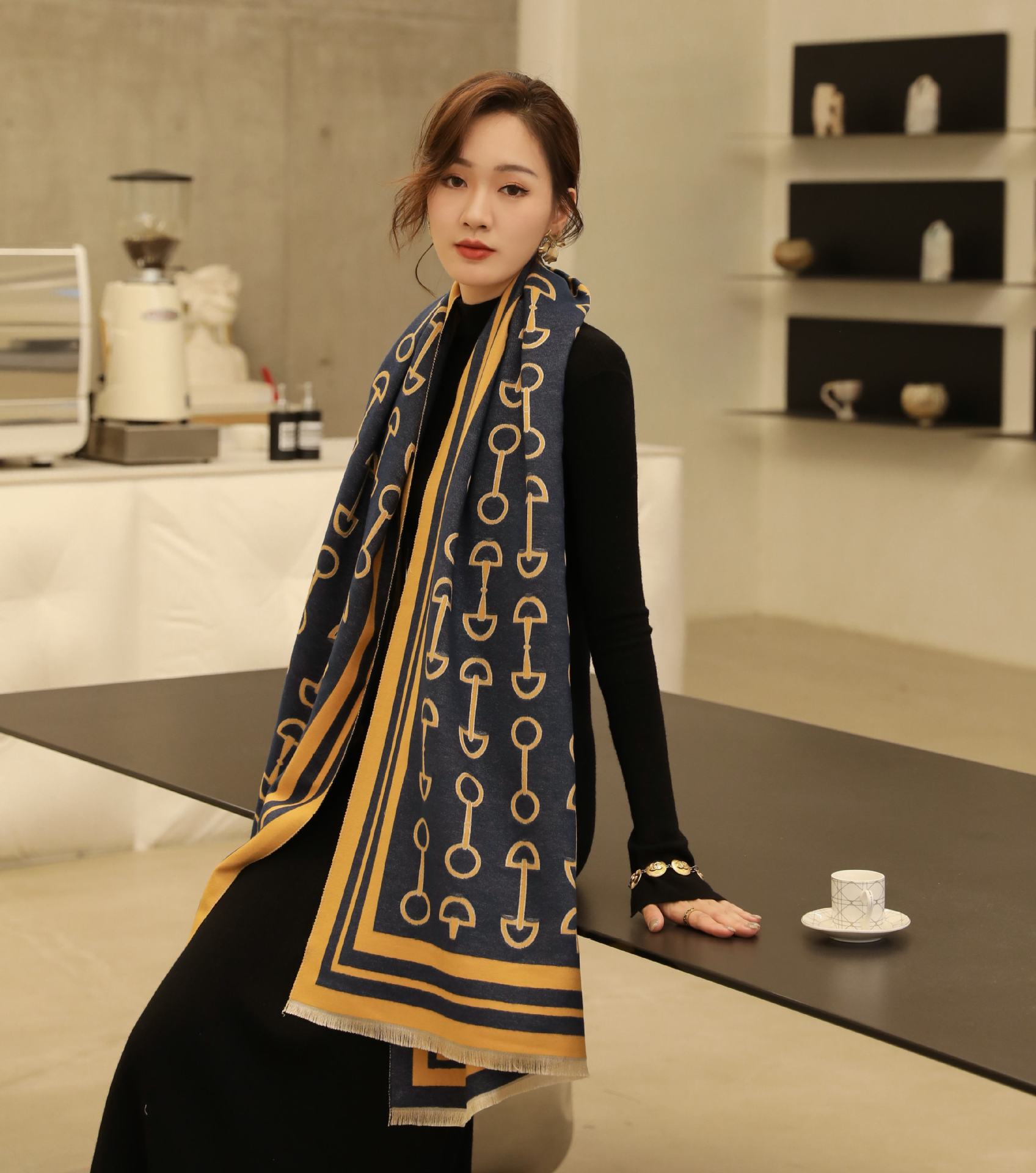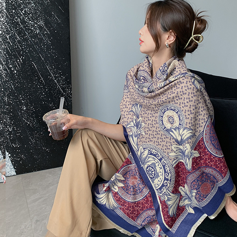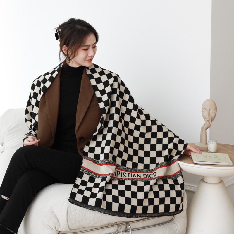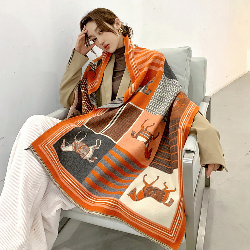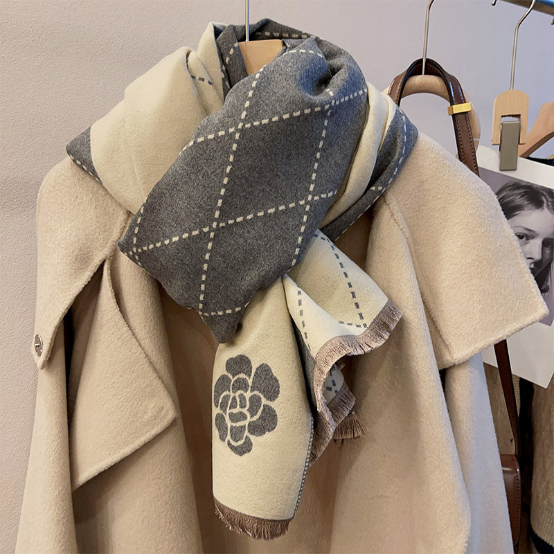 인터넷 연예인 겨울 두꺼운 스카프 여성용 모든 매치 하이 엔드 울 양면 숄 모든 매치 캐시미어 웜 아우터 케이프스토어 가기