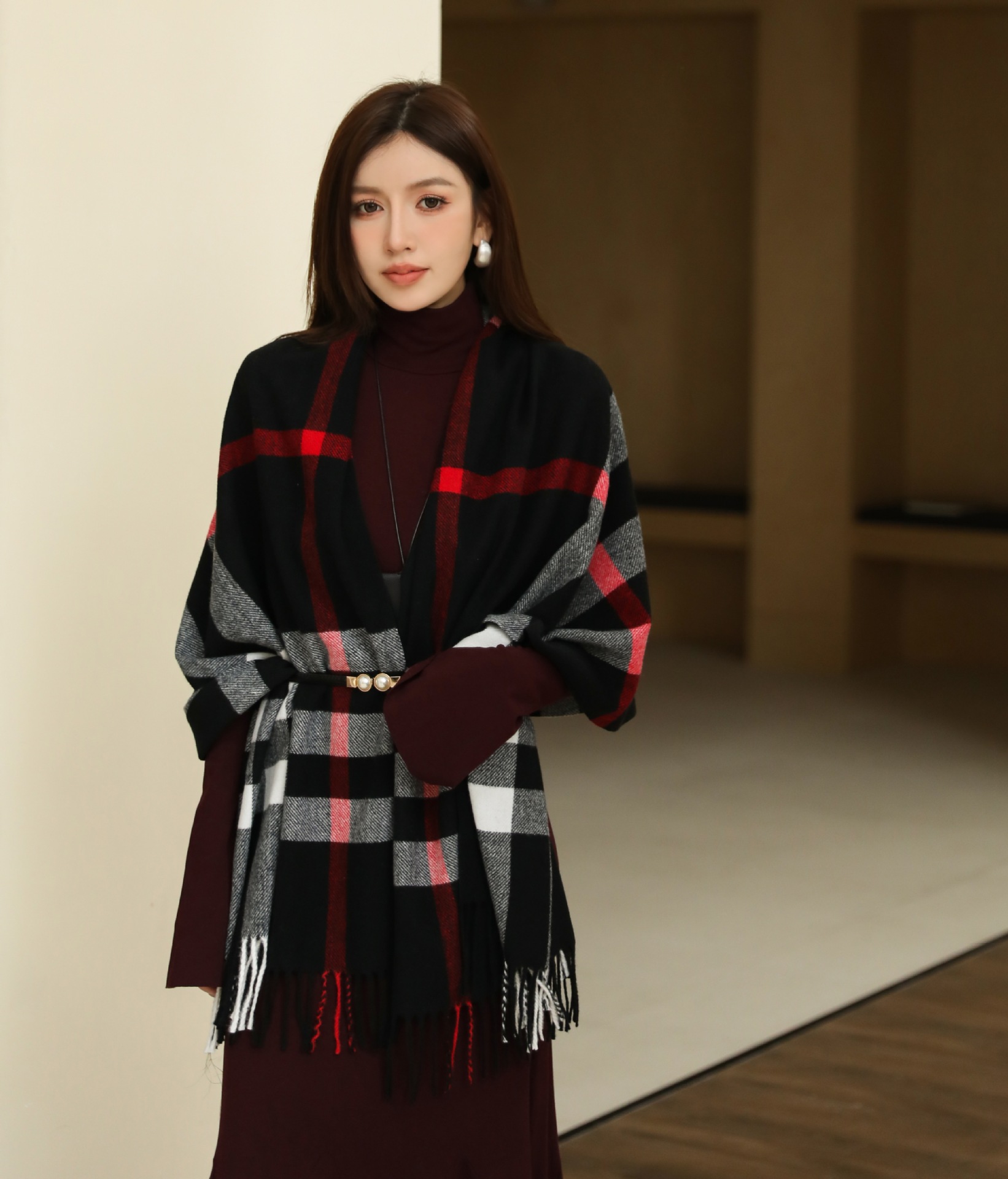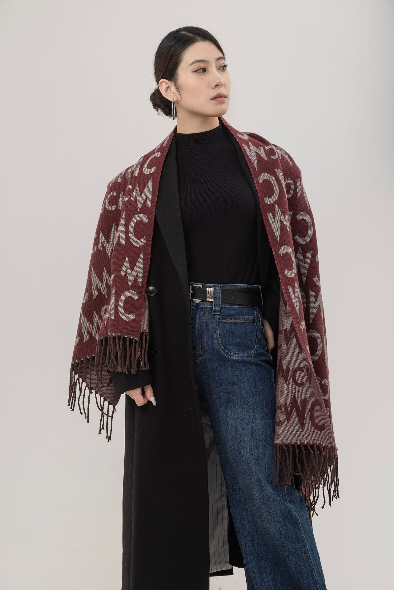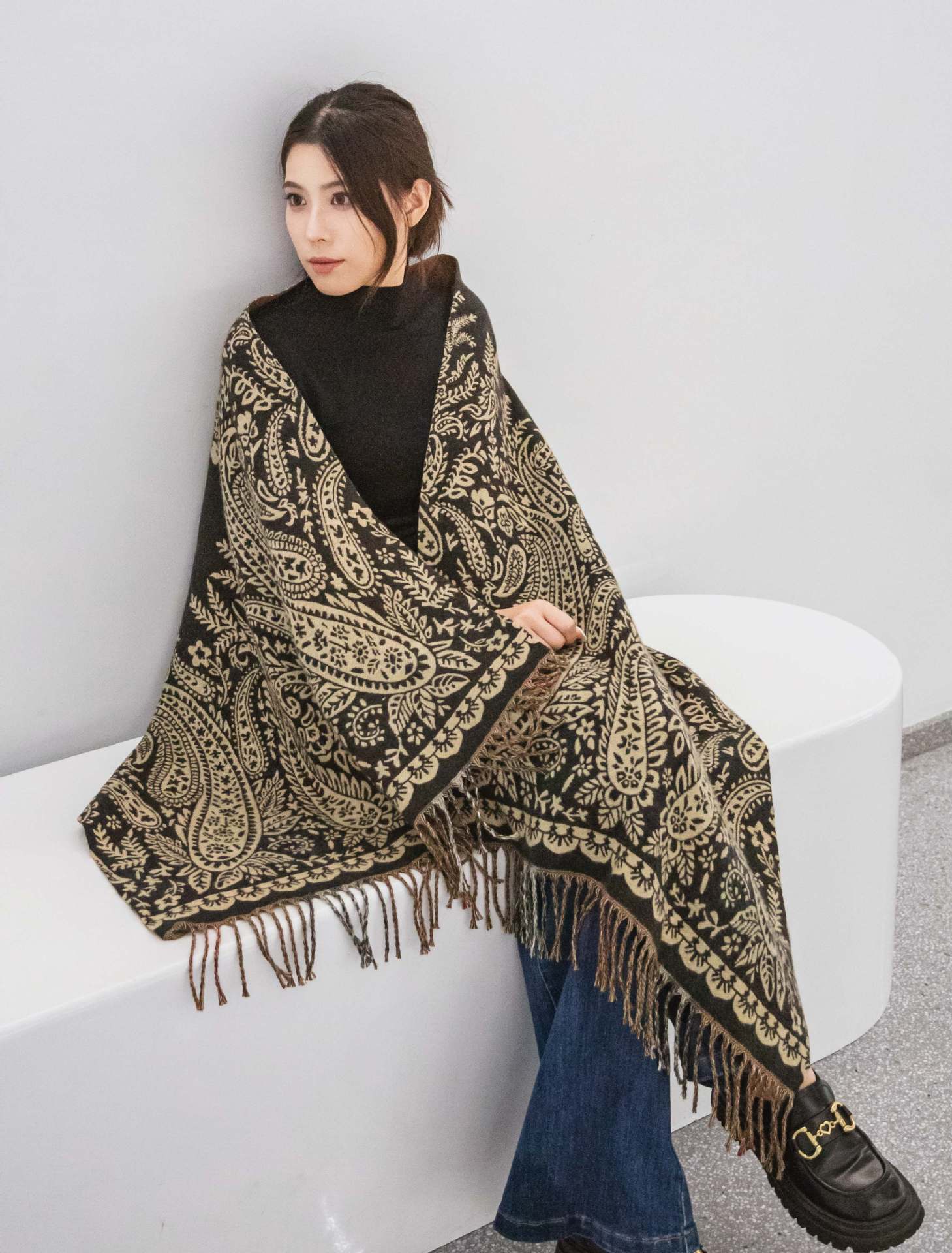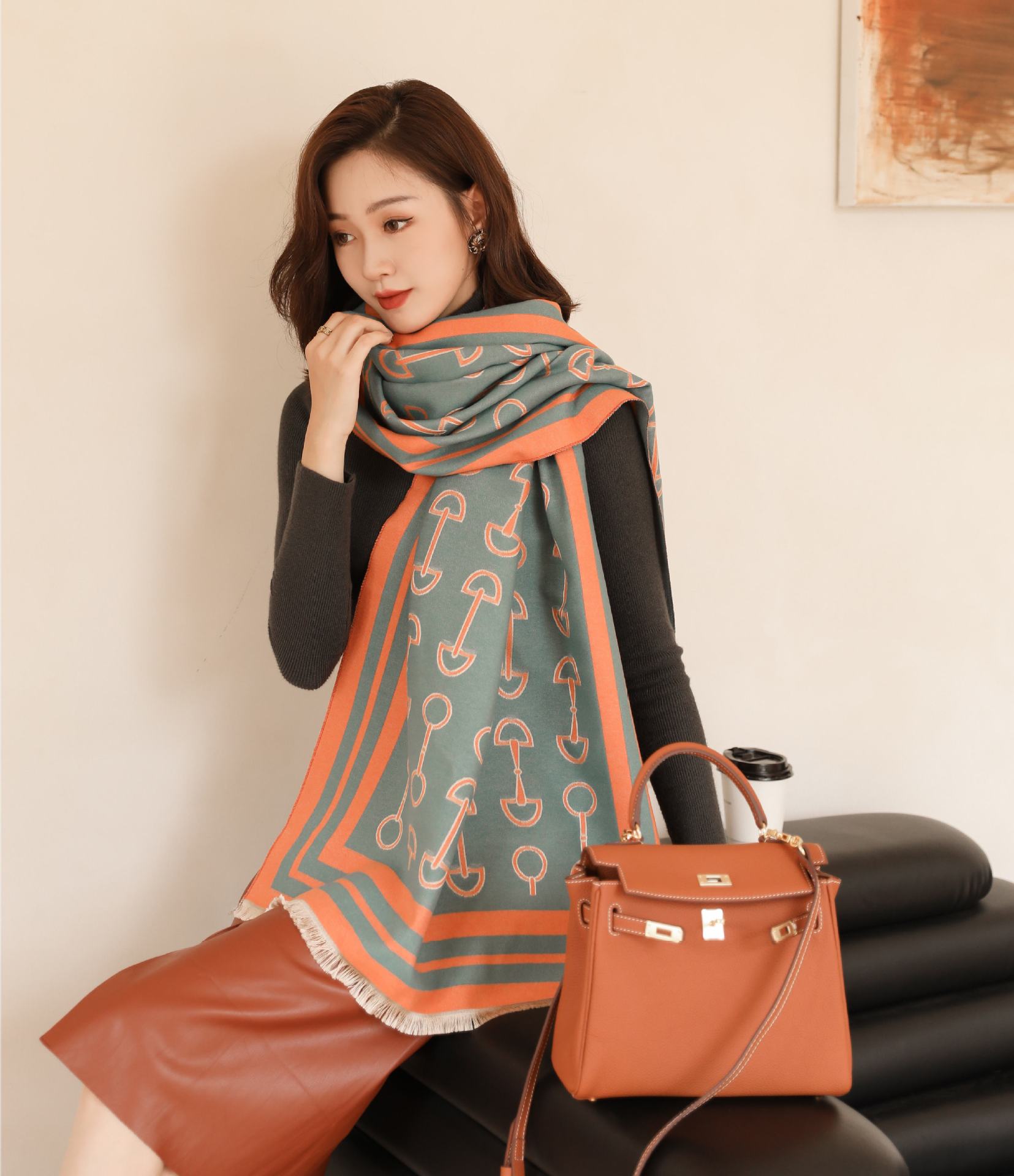 인터넷 연예인 겨울 두꺼운 스카프 여성용 모든 매치 하이 엔드 울 양면 숄 모든 매치 캐시미어 웜 아우터 케이프스토어 가기