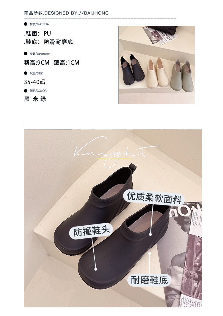 고급 레인 부츠 여성용 성인용 쇼트 튜브 워터 슈즈 여성용 습식 및 건식 이중 사용 미끄럼 방지 내마모성 로우 탑 방수 주방 신발