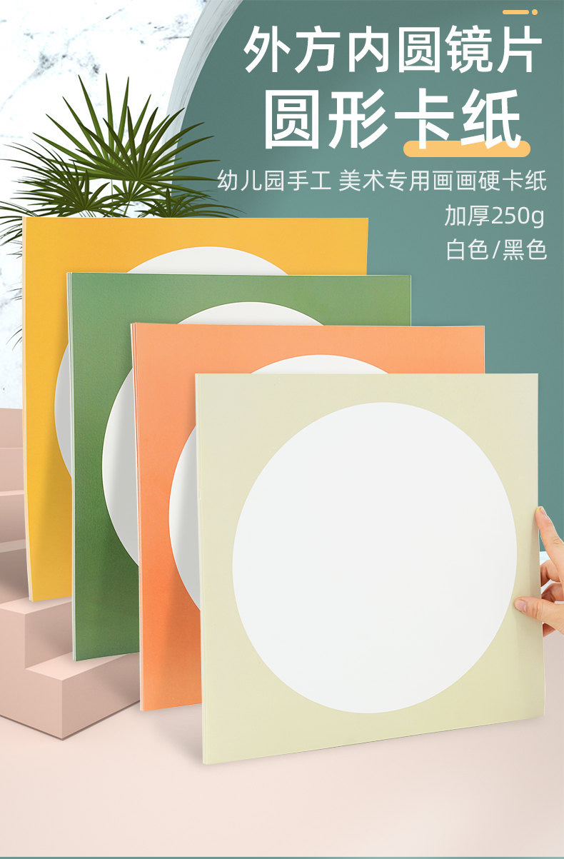 외부 정사각형 및 내부 원형 색상 하드 판지 두꺼운 원형 그림 프레임 어린이 유치원 미술을위한 수제 그림 종이스토어 가기