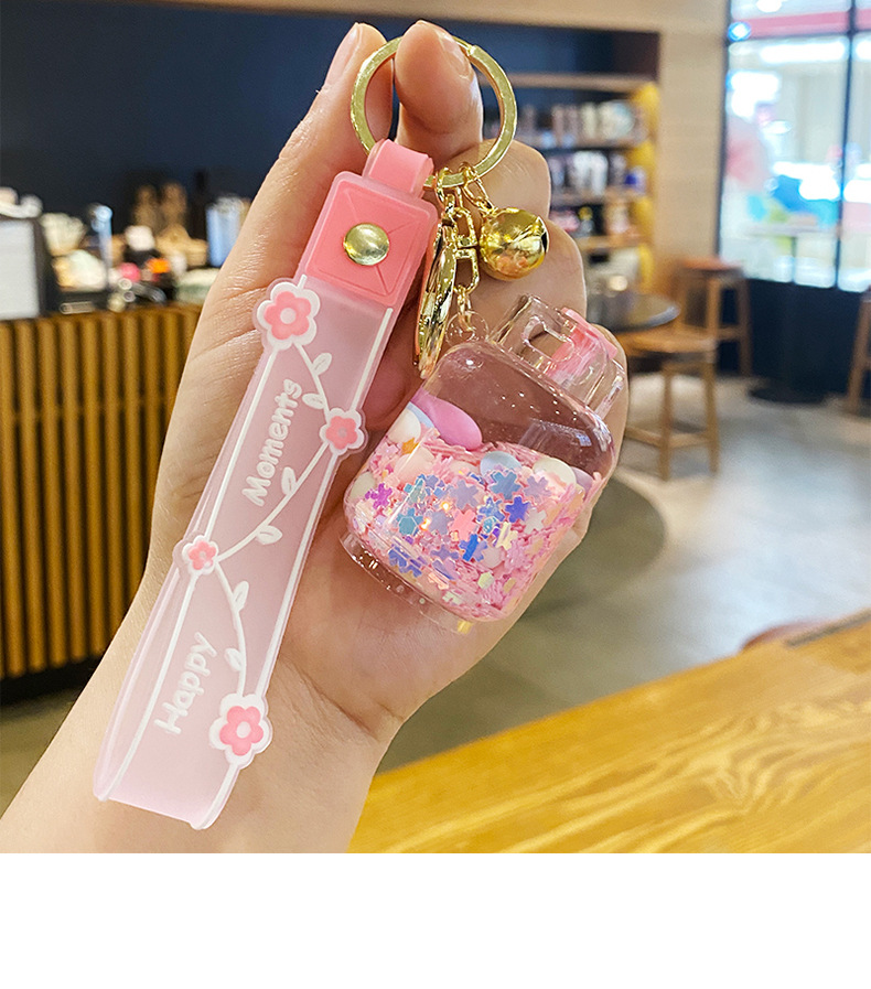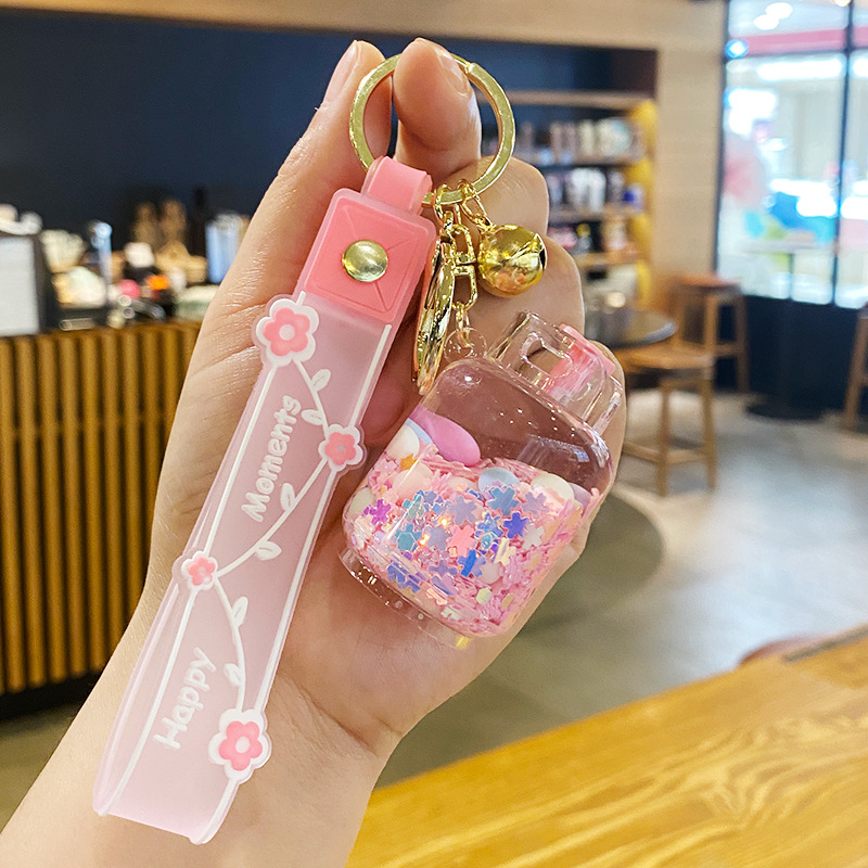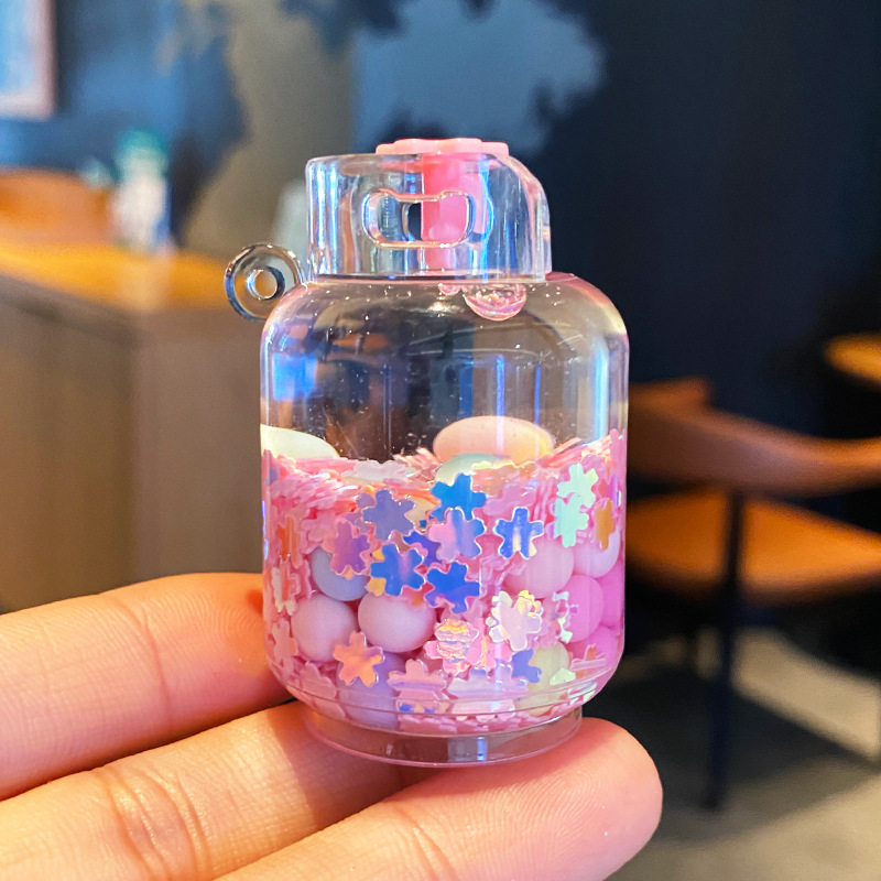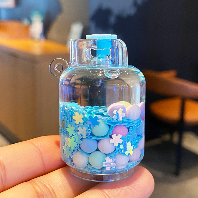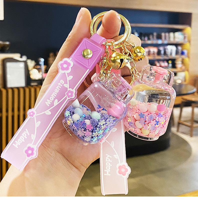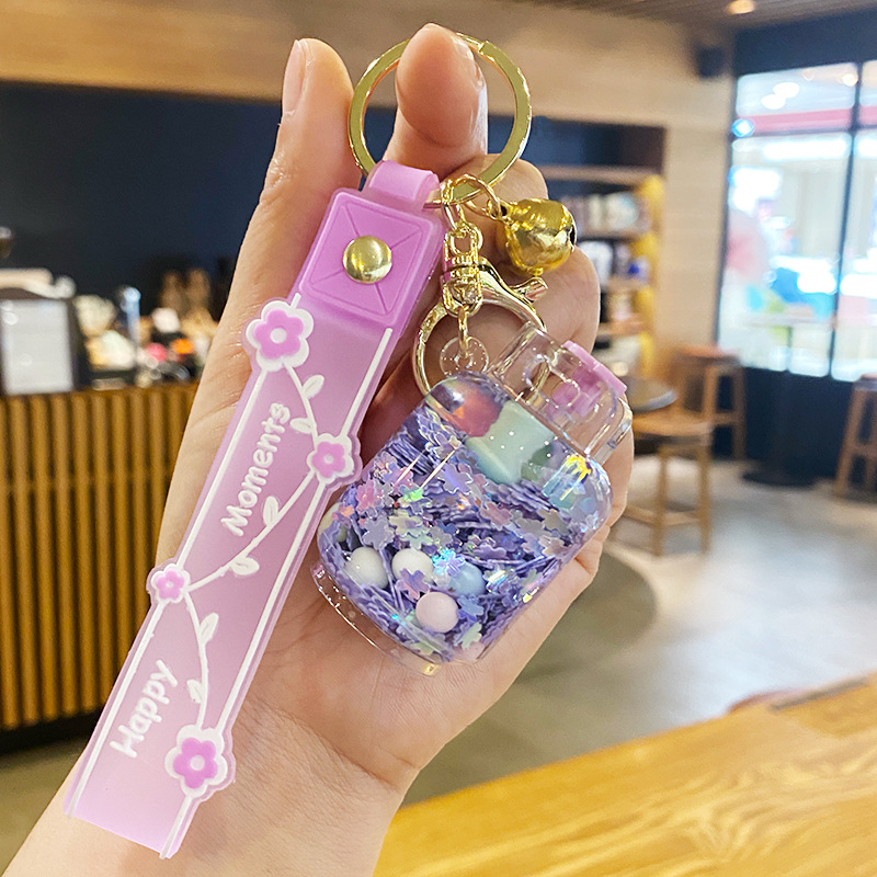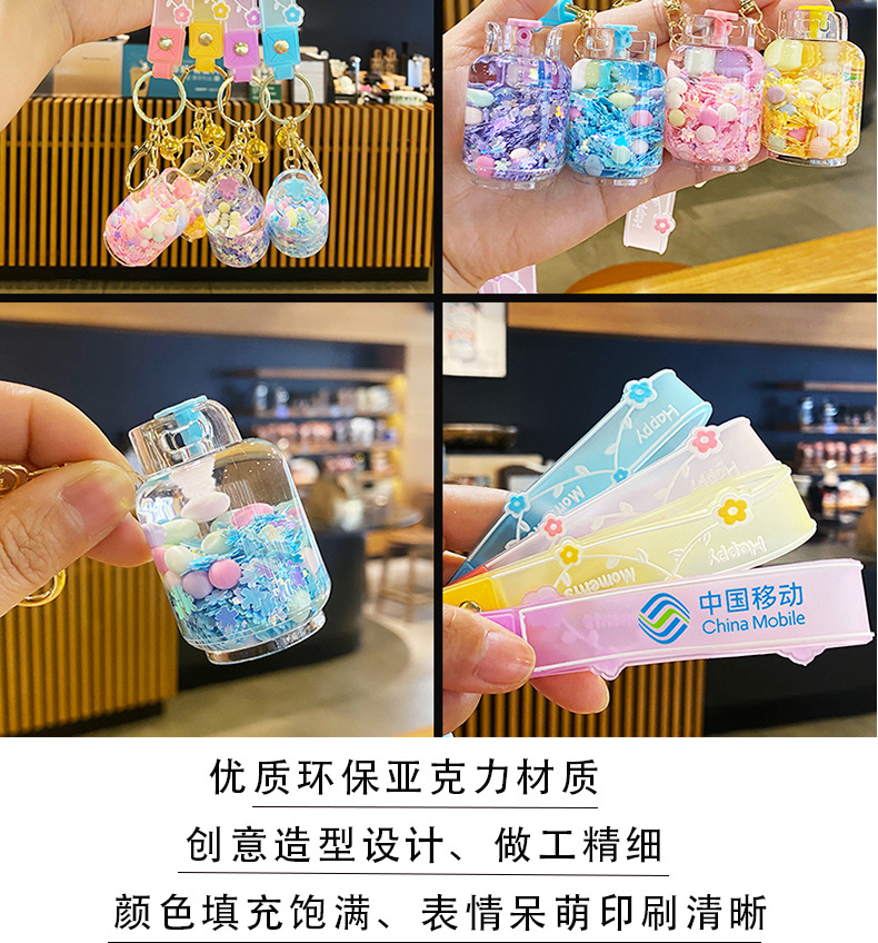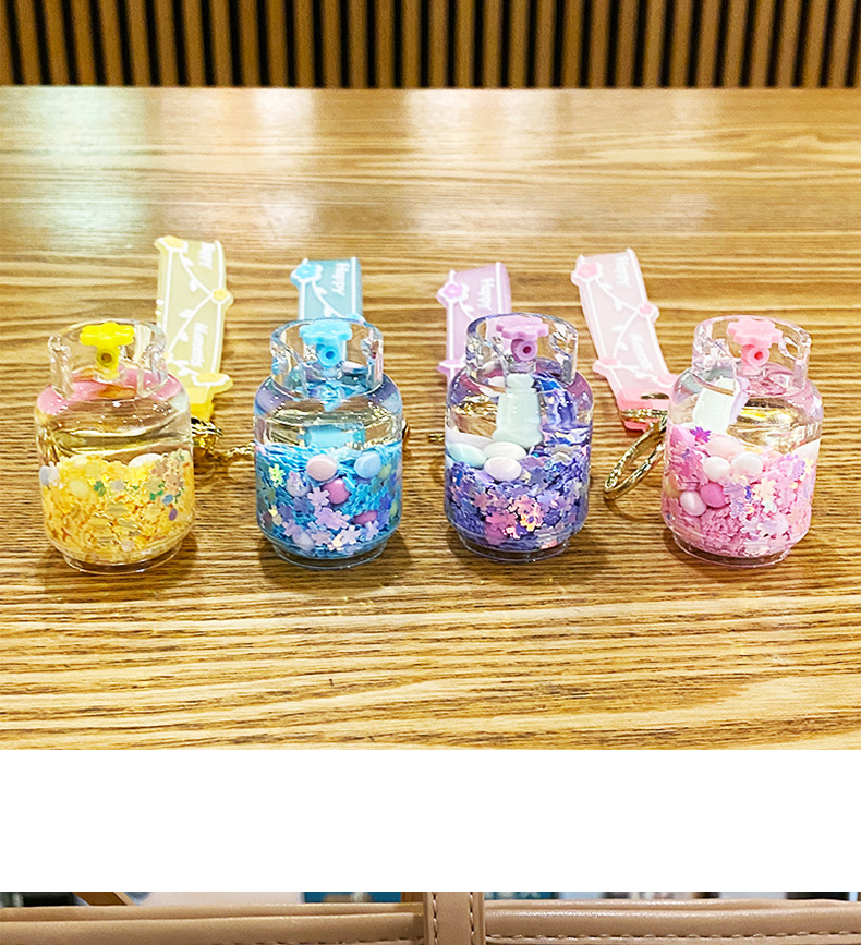 창조적 인 가스 탱크 기름 흐르는 모래 병 열쇠 고리 펜던트 여자의 귀여운 절묘한 학교 가방 펜던트 커플의 자동차 열쇠 고리