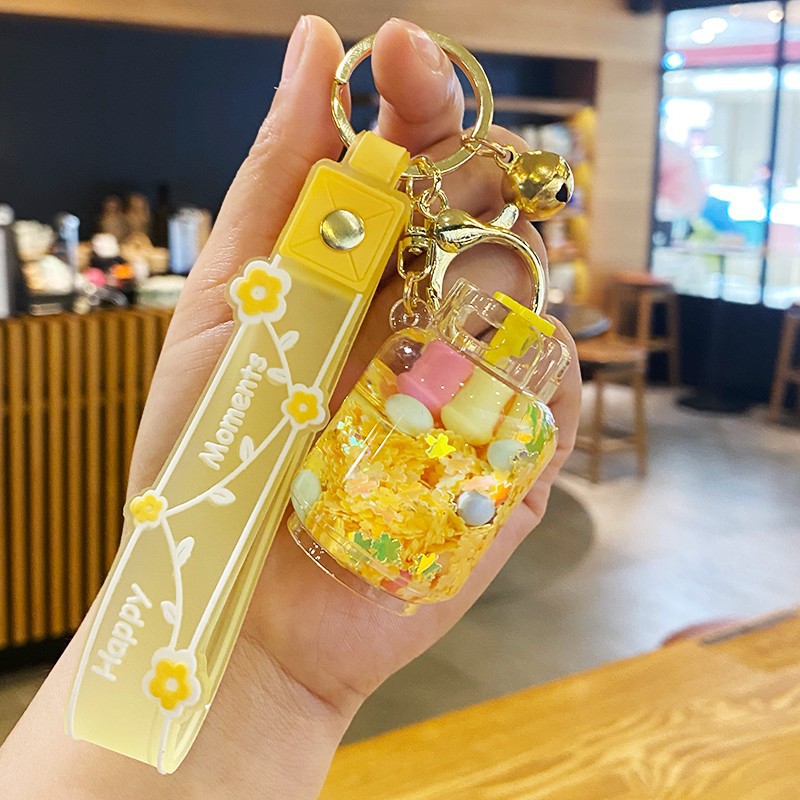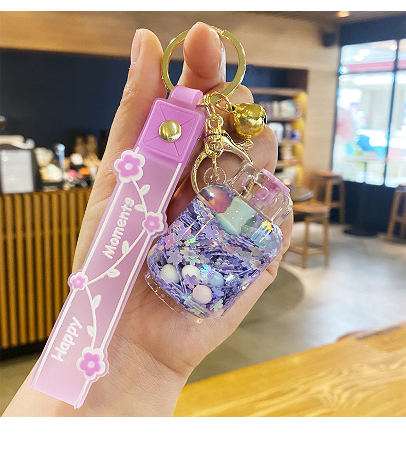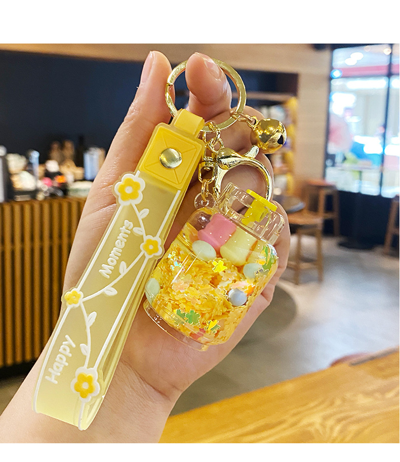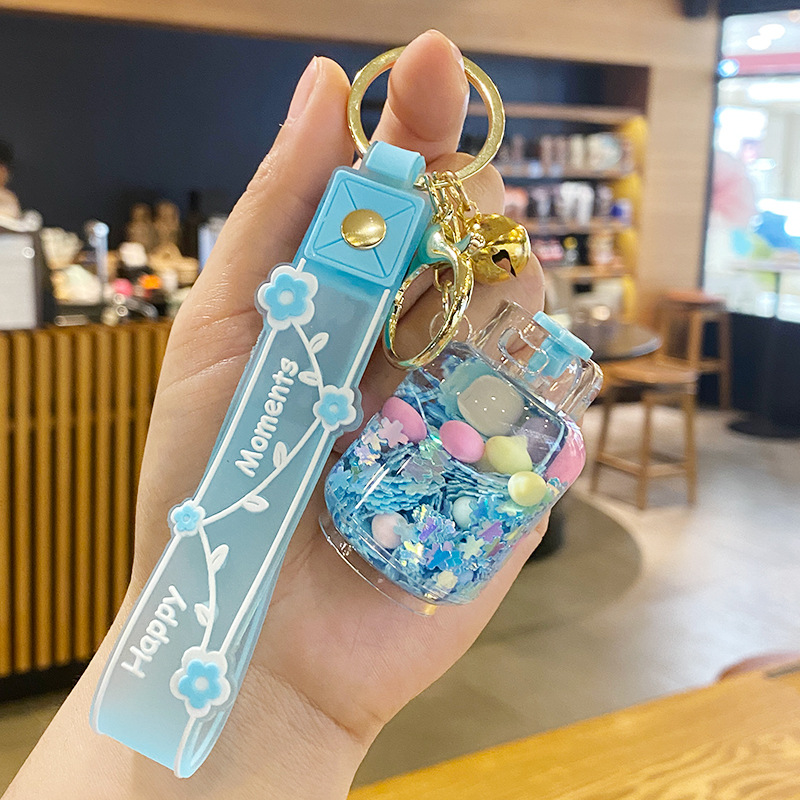 창조적 인 가스 탱크 기름 흐르는 모래 병 열쇠 고리 펜던트 여자의 귀여운 절묘한 학교 가방 펜던트 커플의 자동차 열쇠 고리스토어 가기