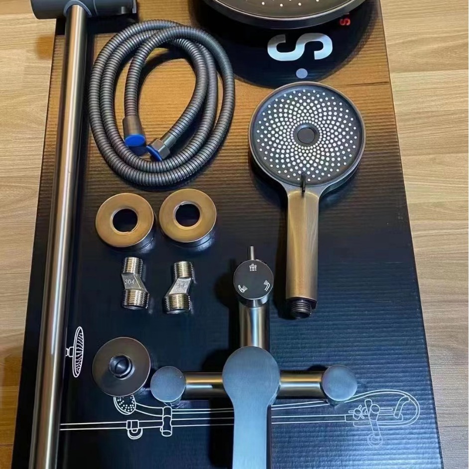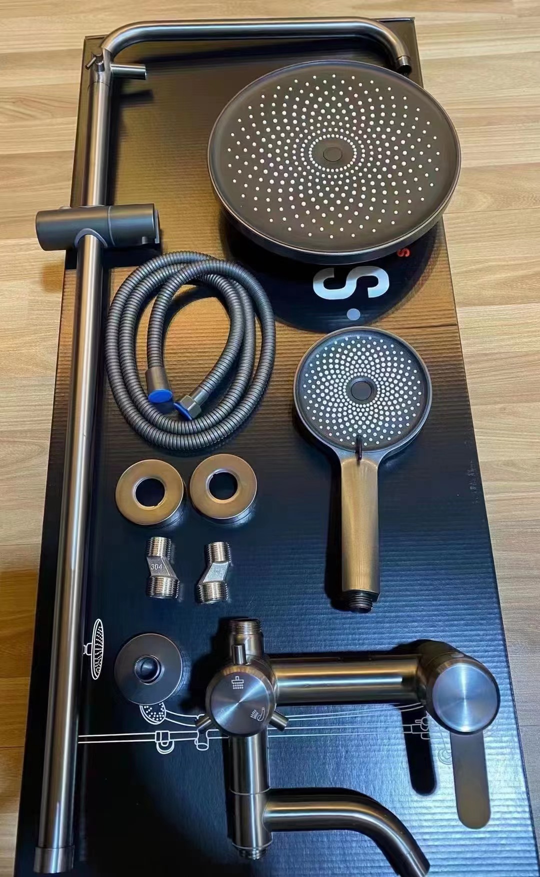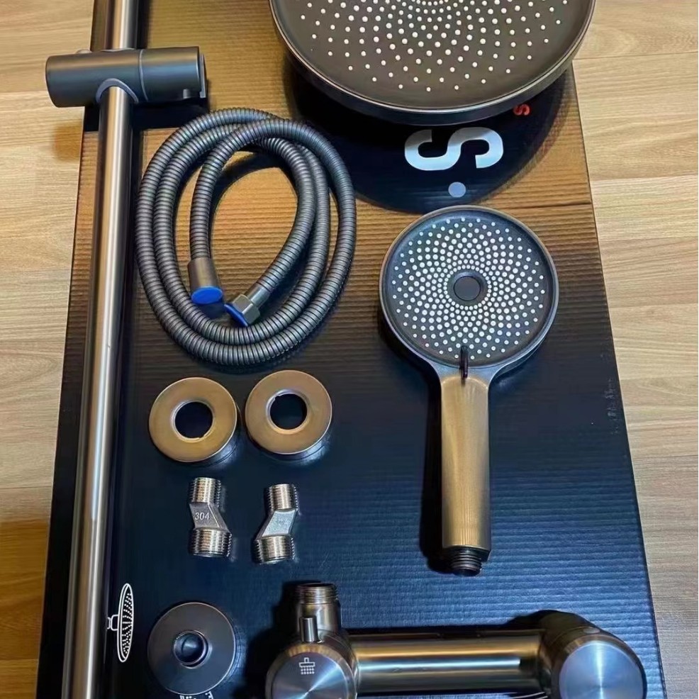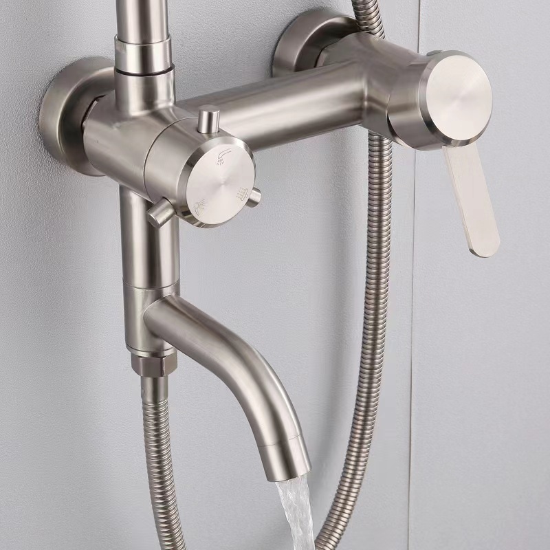 Kaiping 욕실 304 스테인레스 스틸 샤워 세트 따뜻한 차가운 3 단 솔질 욕실 상단 스프레이 샤워 헤드