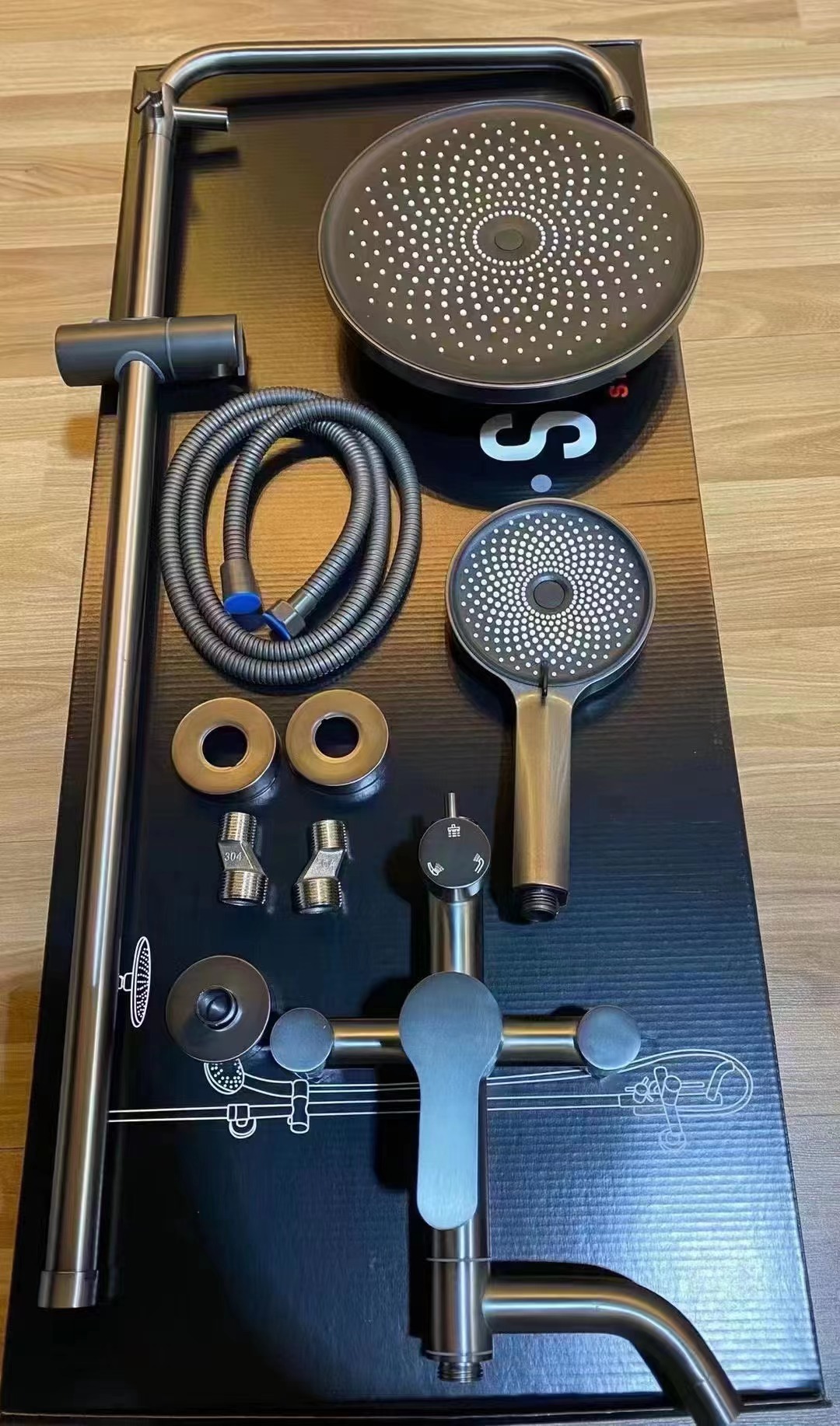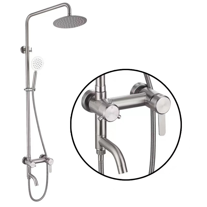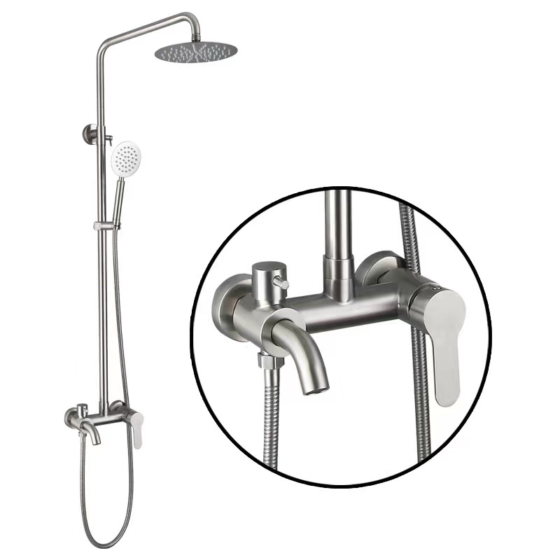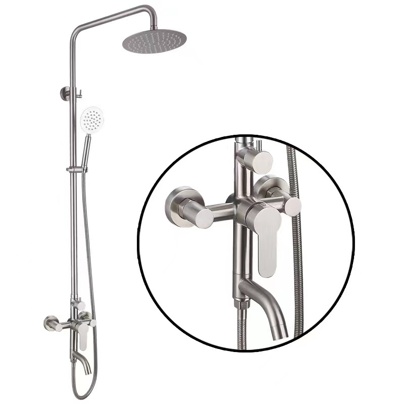 Kaiping 욕실 304 스테인레스 스틸 샤워 세트 따뜻한 차가운 3 단 솔질 욕실 상단 스프레이 샤워 헤드