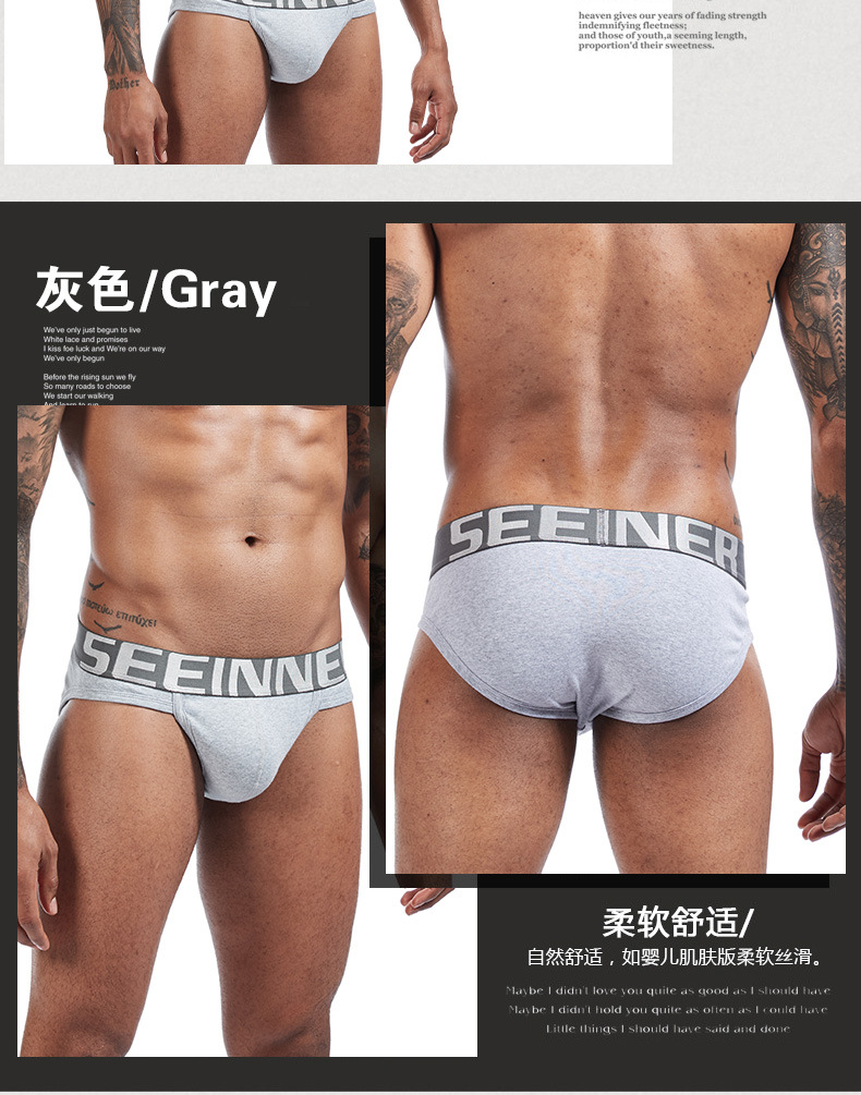 남자 속옷 면 팬티 하이 포크 엉덩이 리프팅 단색 편지 벨트 독립 포켓 남자 바지 섹시스토어 가기