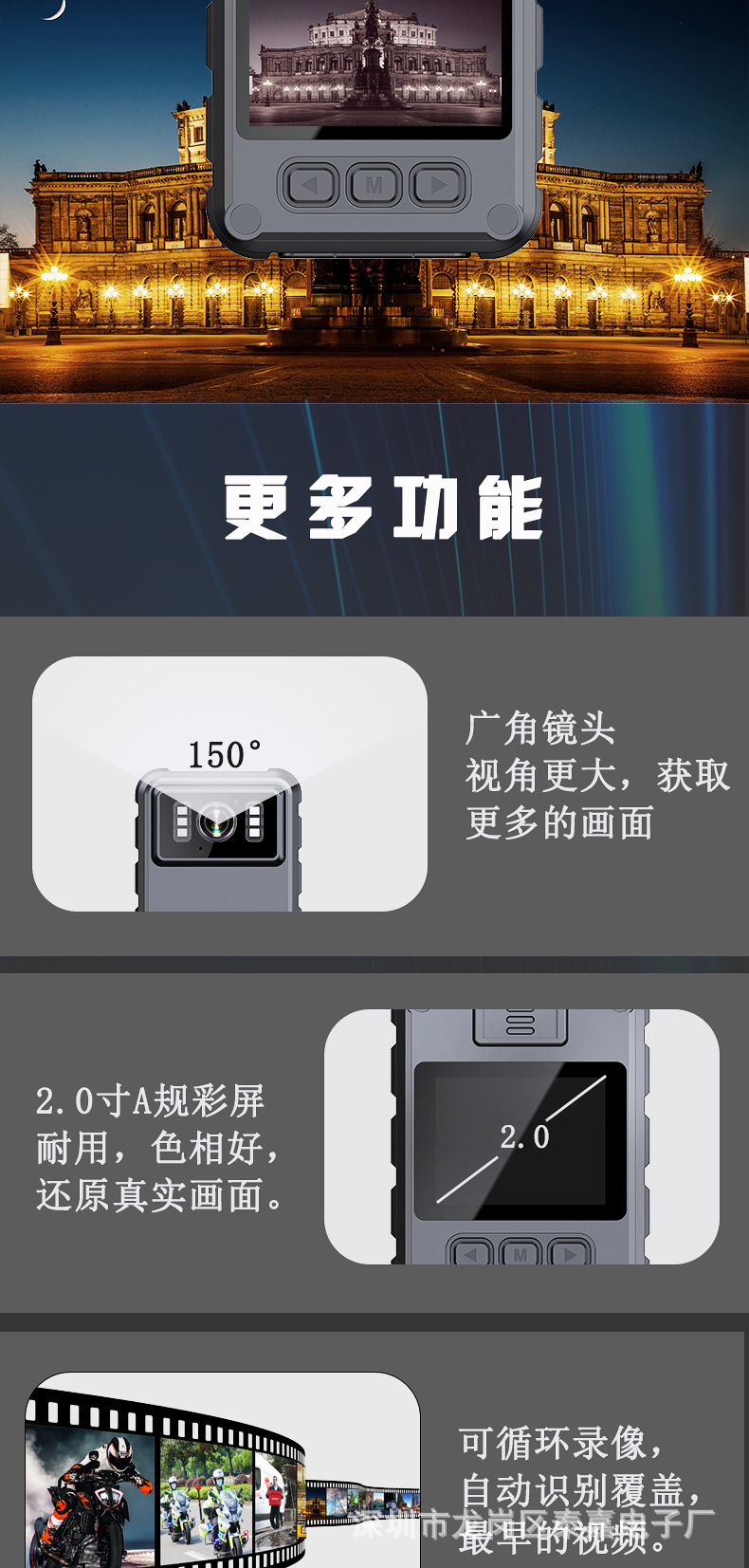 HD 적외선 야간 투시경 방수 야외 WiFi 스포츠 카메라 휴대용 백 클립형 가슴 오토바이 레코더스토어 가기