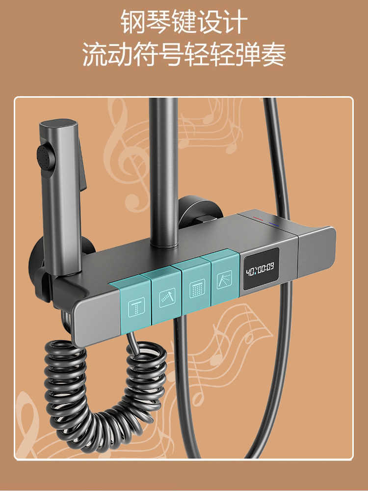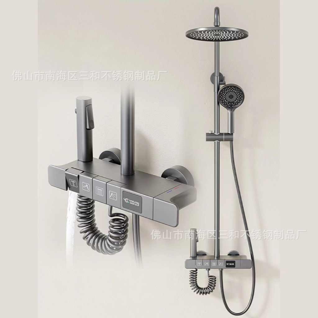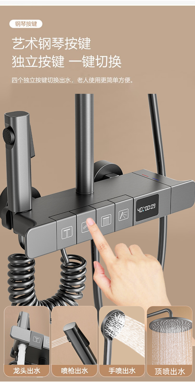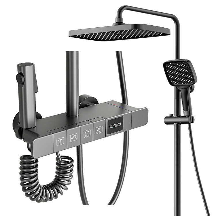 샤워 세트 가정용 지능형 디지털 디스플레이 4 버튼 모든 구리 샤워 장치 욕실 가압 비 스프레이 헤드