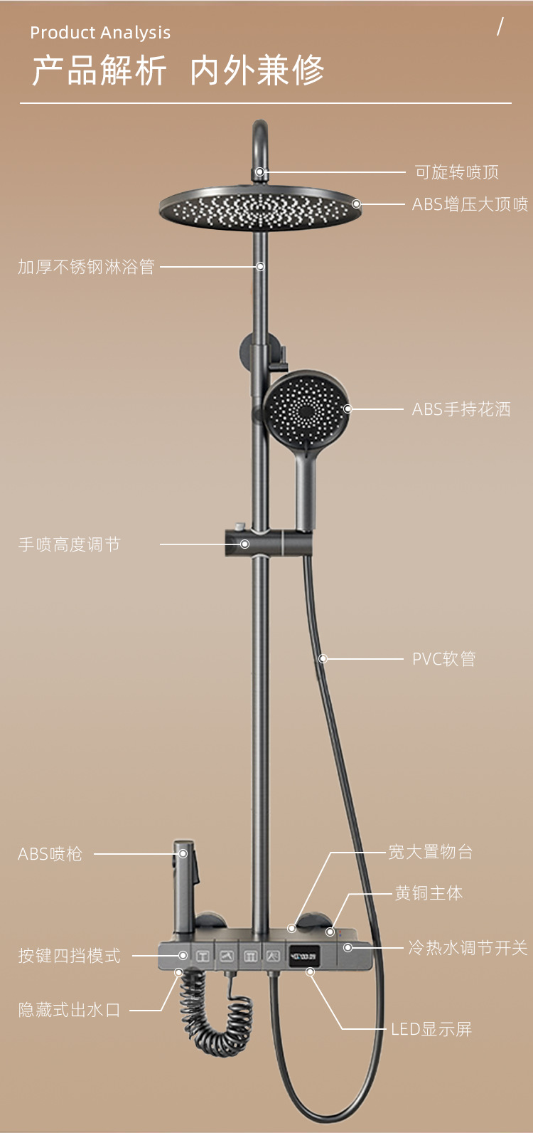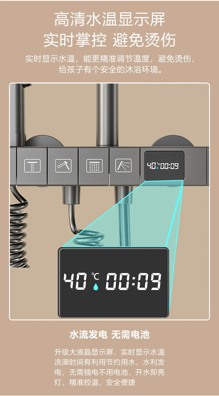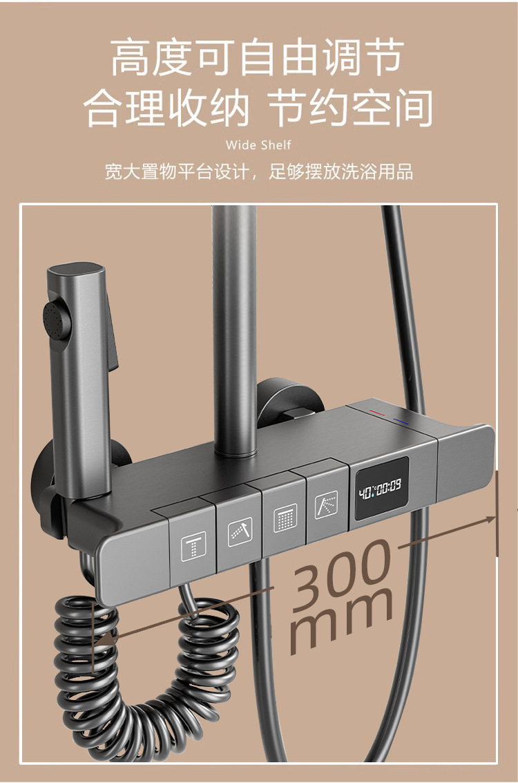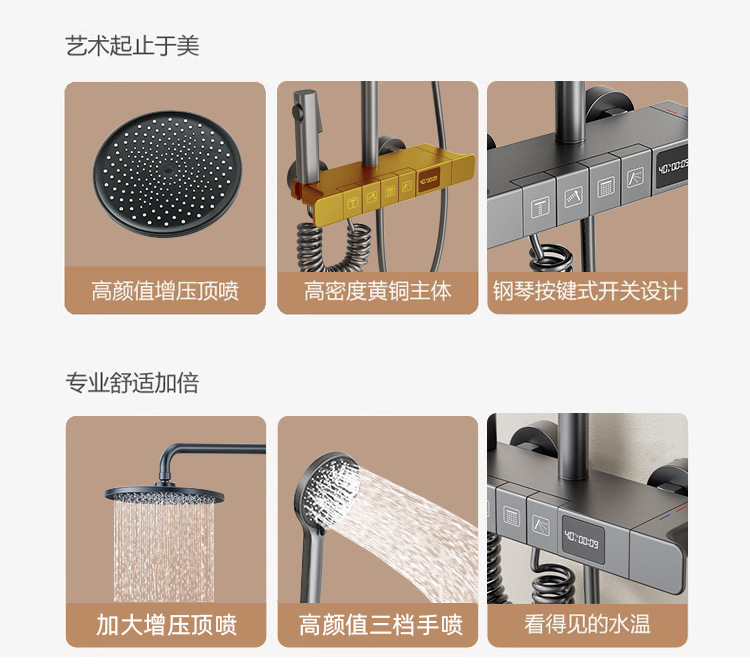 샤워 세트 가정용 지능형 디지털 디스플레이 4 버튼 모든 구리 샤워 장치 욕실 가압 비 스프레이 헤드