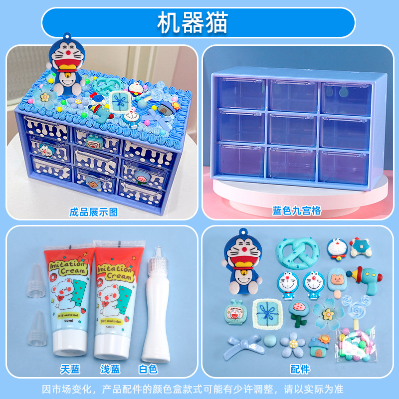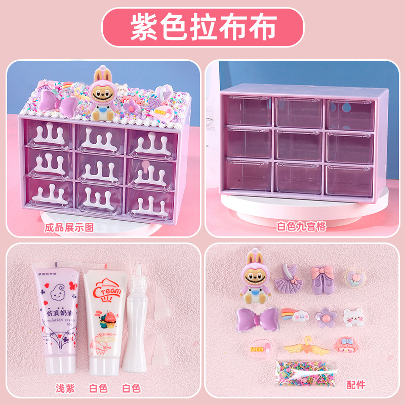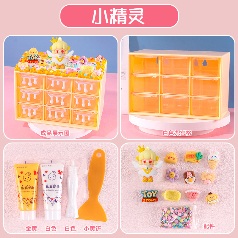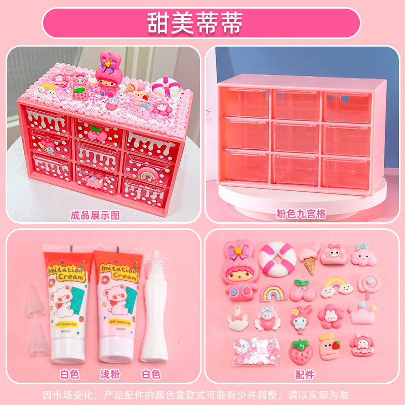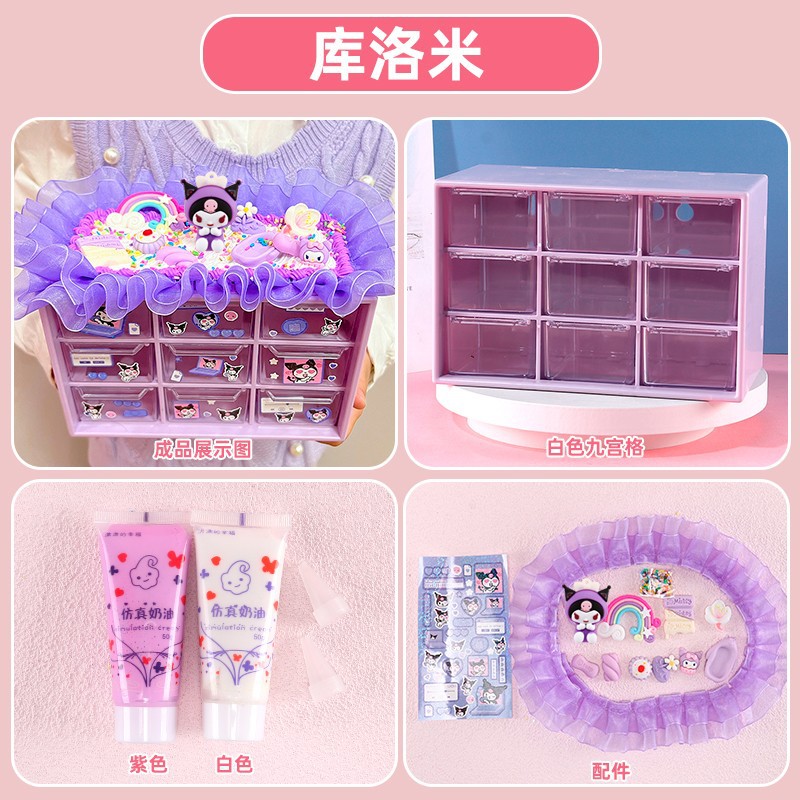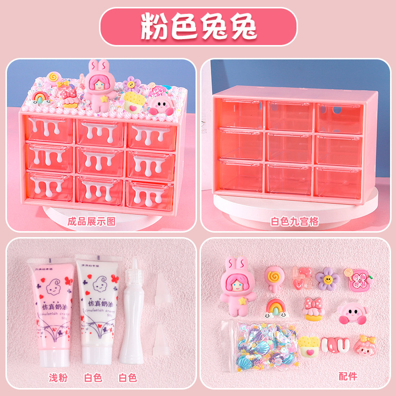 수공예 diy는 자신의 크림 접착제 Jiugongge 보관 상자 재료 가방 만화 귀여운 데스크탑 저장
