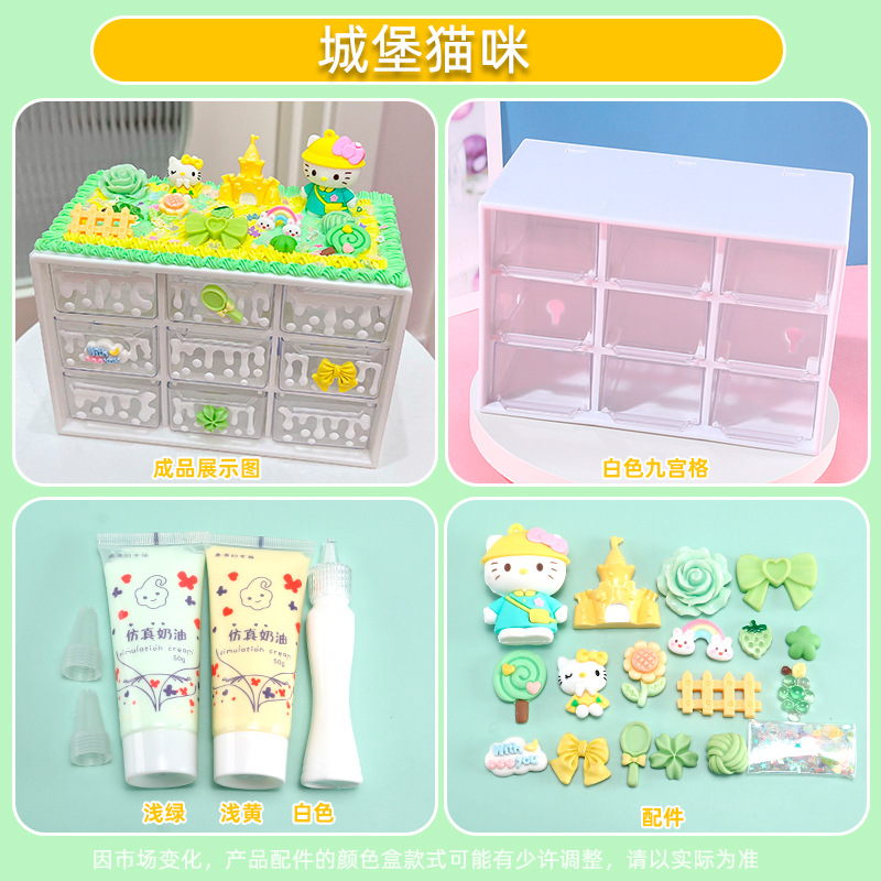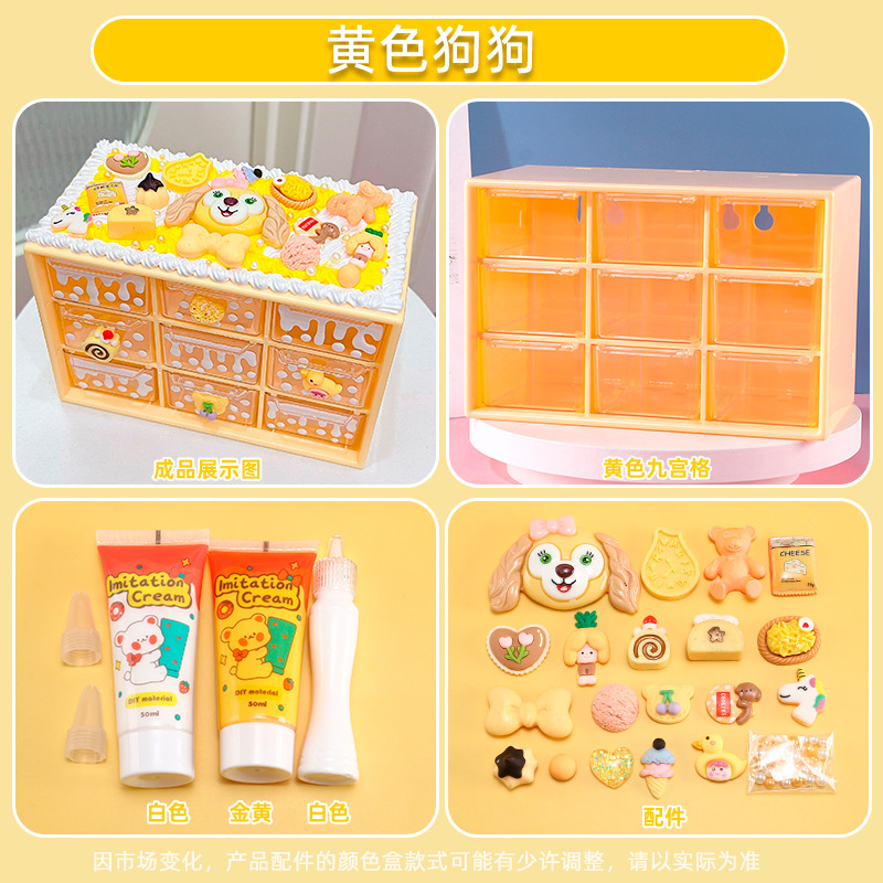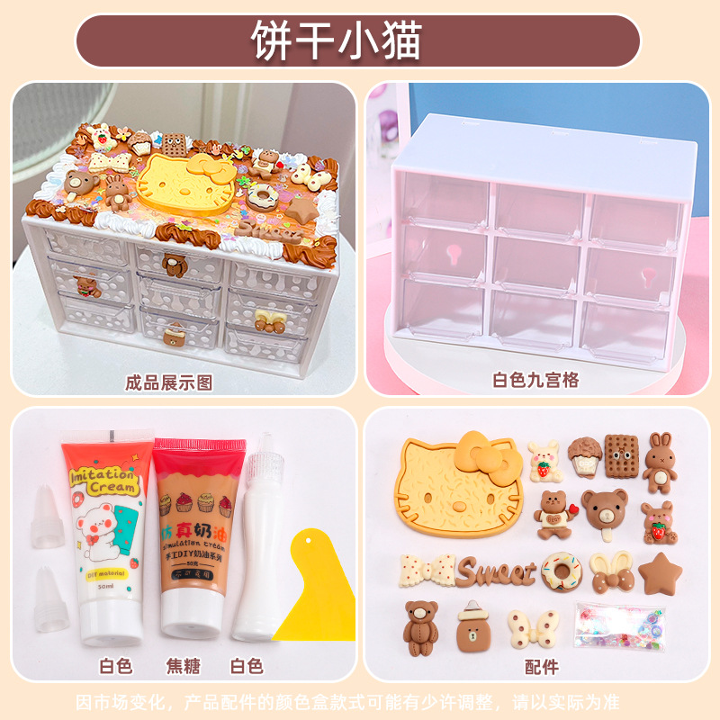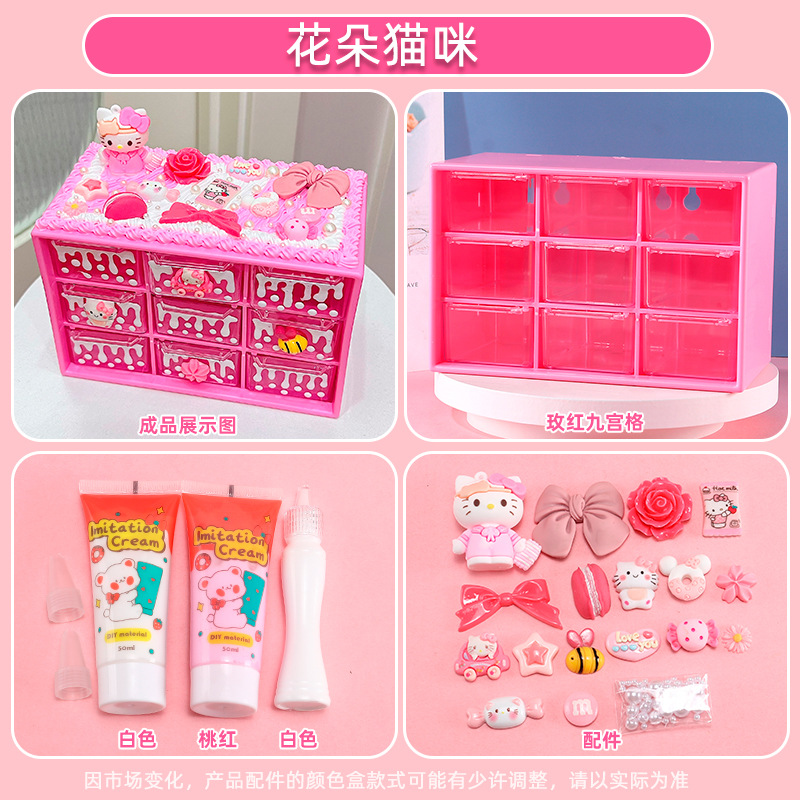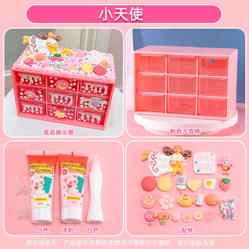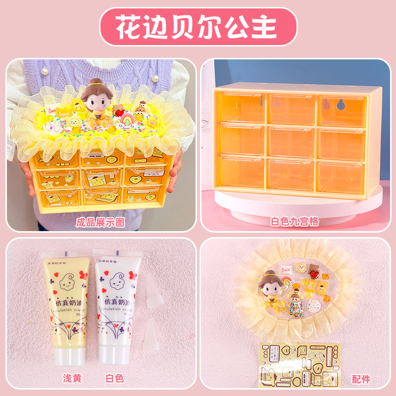 수공예 diy는 자신의 크림 접착제 Jiugongge 보관 상자 재료 가방 만화 귀여운 데스크탑 저장