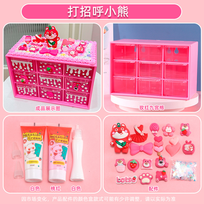 수공예 diy는 자신의 크림 접착제 Jiugongge 보관 상자 재료 가방 만화 귀여운 데스크탑 저장스토어 가기