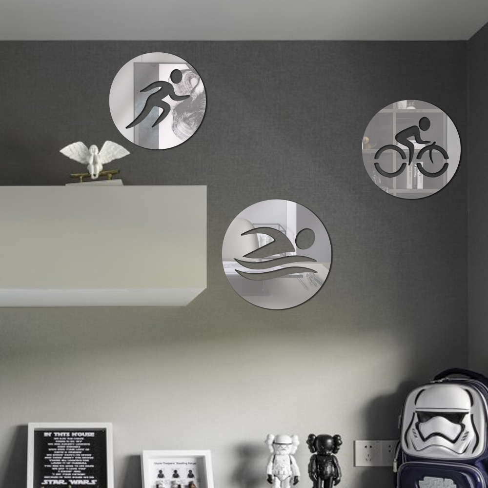 JM895 대외 무역 철인 3 종 경기 아크릴 거울 벽 스티커 창조적 인 레이아웃 침실 방 자체 접착 벽 장식