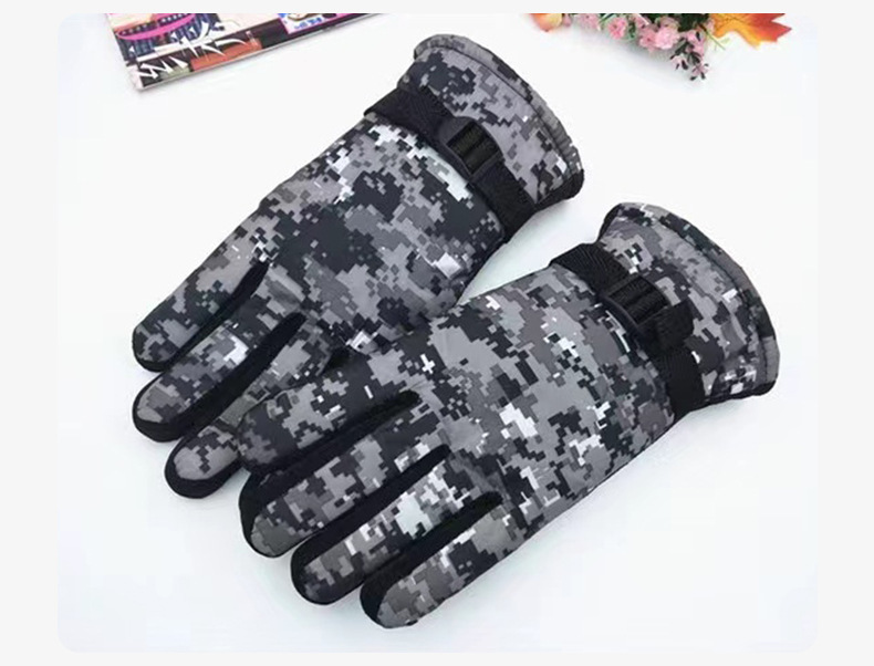 공장 저렴한 가격 재고 겨울 스키 타기 장갑 위장 두꺼운 기모 방한 따뜻한 미끄럼 방지 성인 장갑스토어 가기