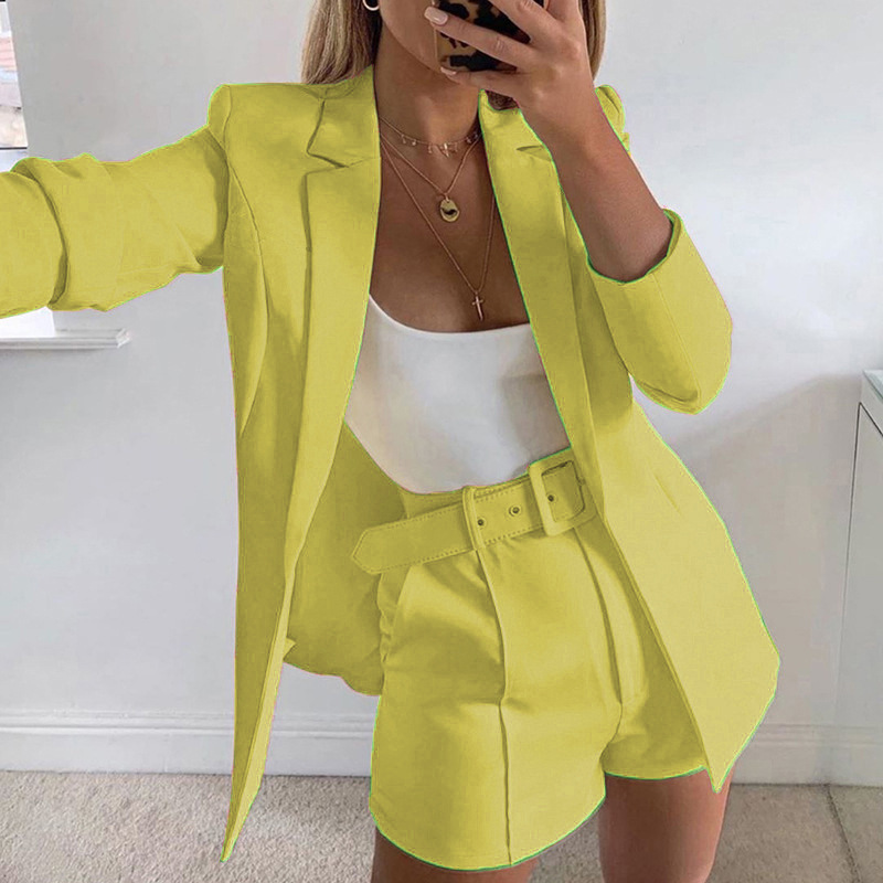A52800 유럽과 미국 여성 패션 캐주얼 작은 세트 세트 개정 패브릭 업그레이드 (벨트 포함)스토어 가기