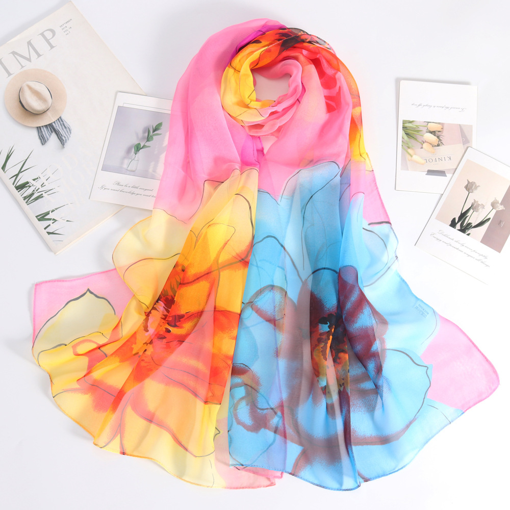 여름 통기성 스카프 우아한 꽃 긴 스카프 여성의 얇은 여행 자외선 차단제 숄 조젯 스카프 대외 무역