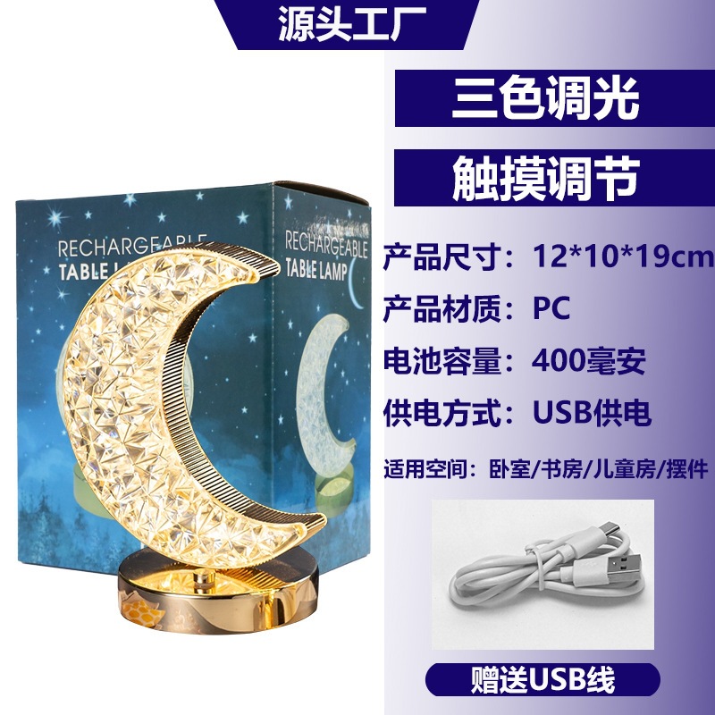 LED 테이블 램프 별 달 충전 터치 침실 침대 옆 선물 작은 테이블 램프 국경 현대 간단한 장식