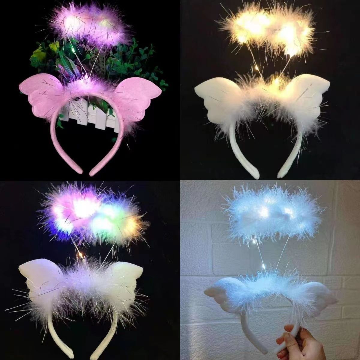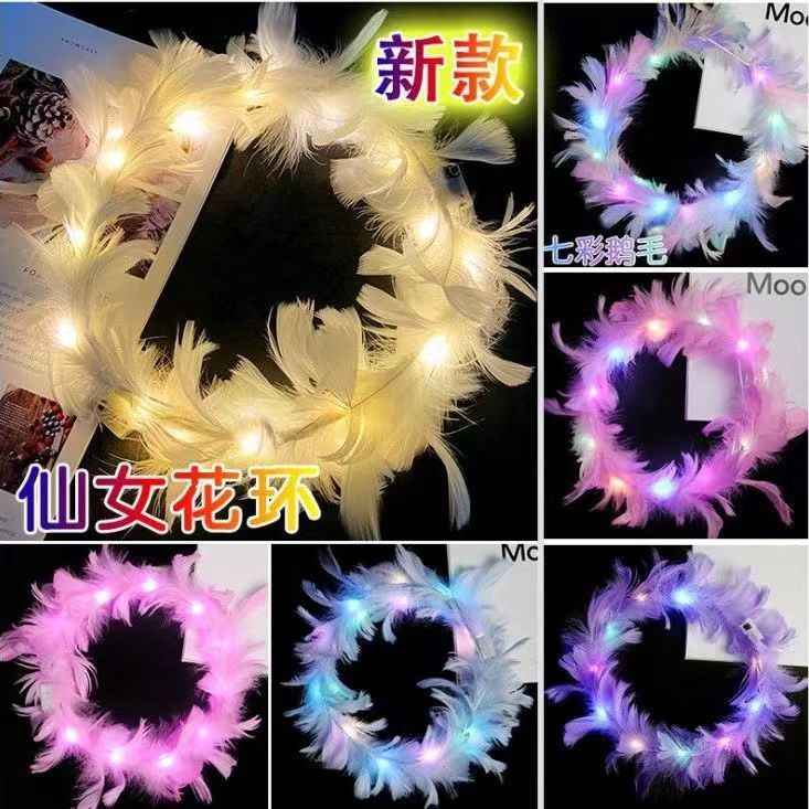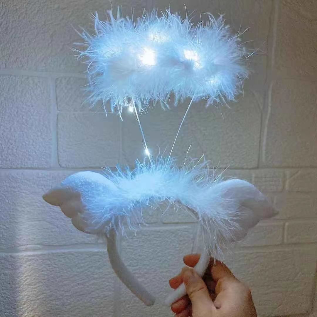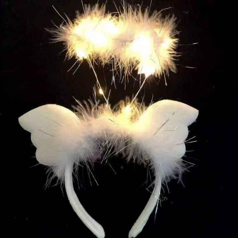 한국식 핫 셀러 천사 머리띠 빛나는 깃털 날개 셀프 패치 인터넷 연예인 슈퍼 요정 귀여운 모자 성능 야간 시장 마구간