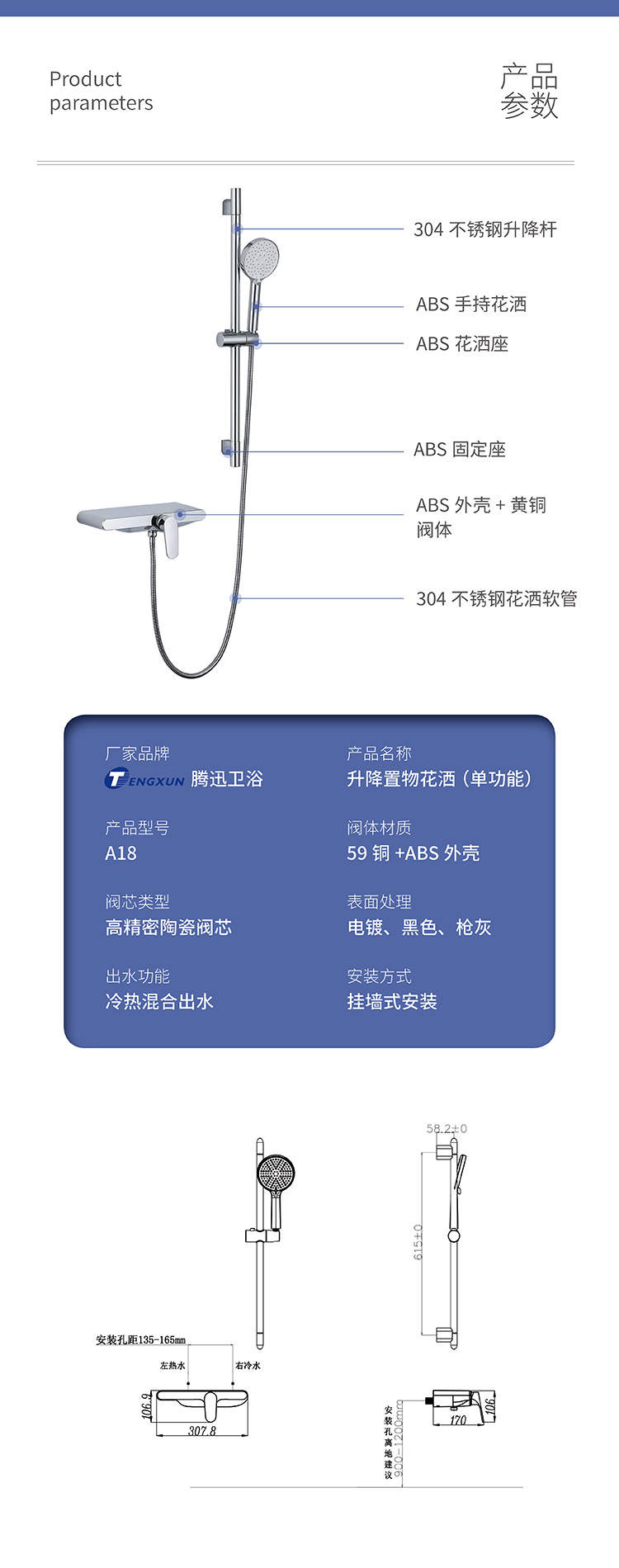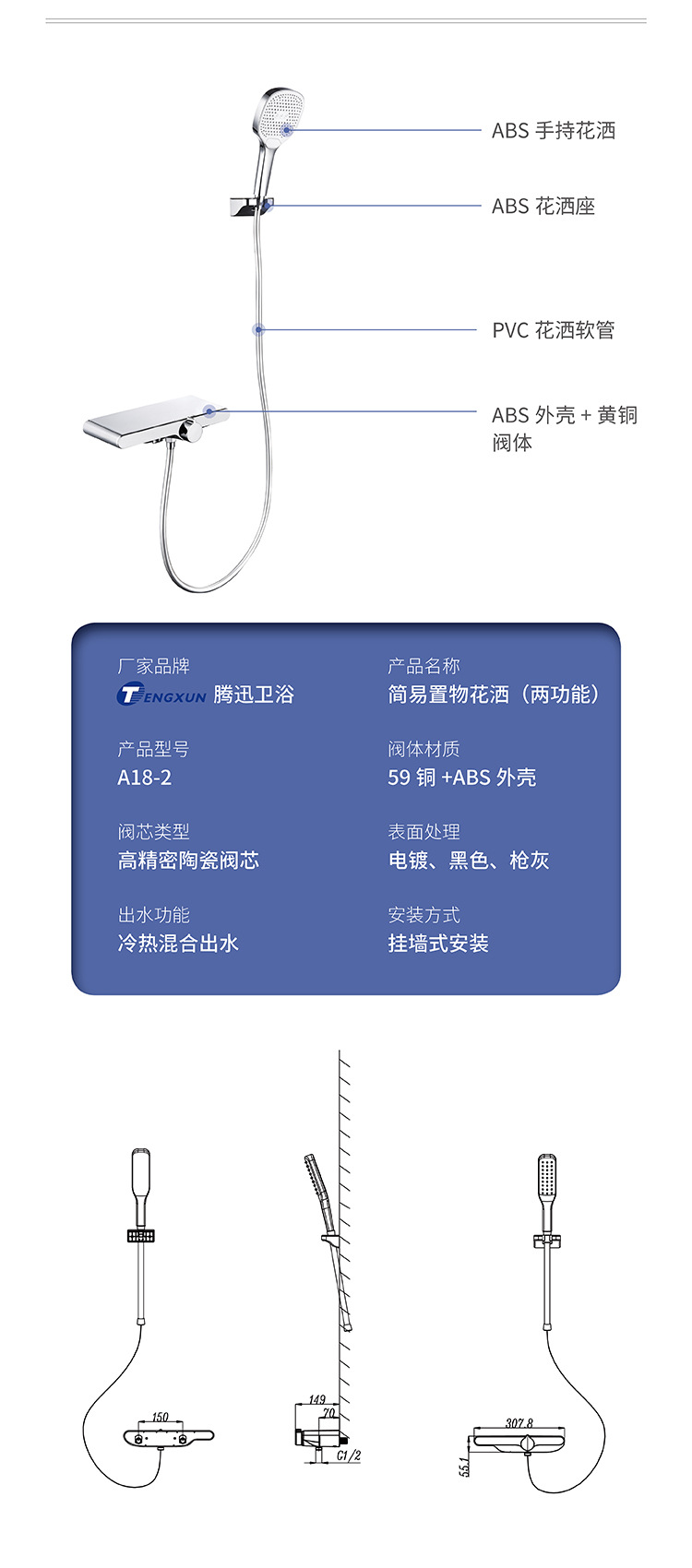 국경 간 대외 무역 구리 샤워 샤워 간단한 최고 스프레이 비 세트 분할 호텔 엔지니어링 가구스토어 가기