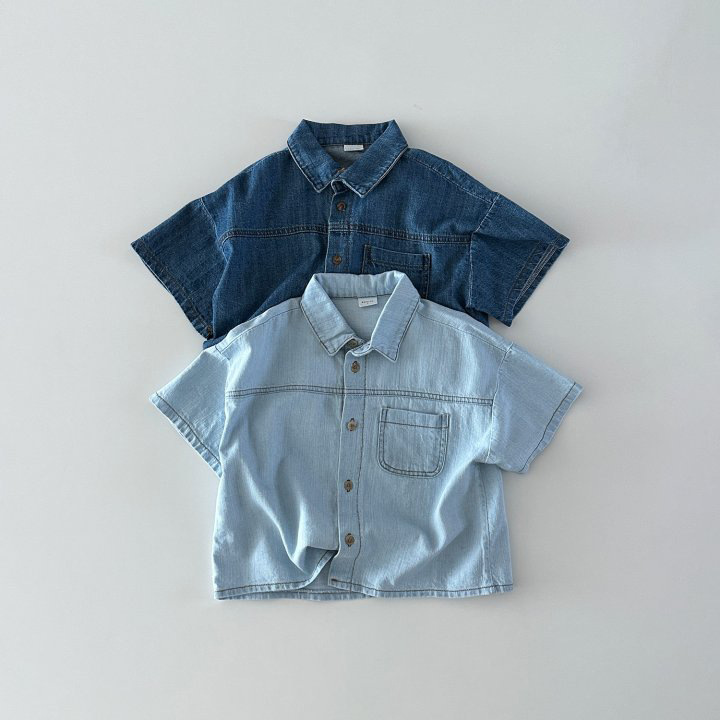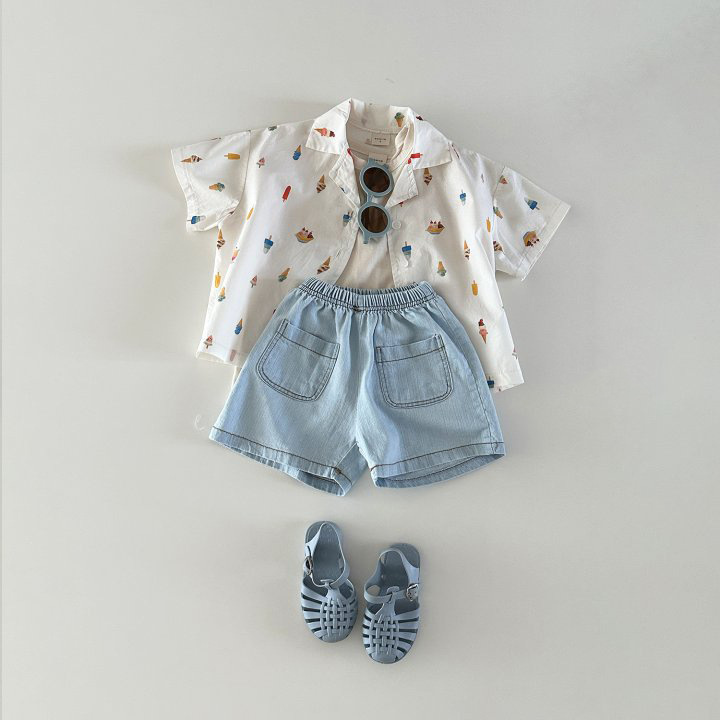 아기 소년 소녀 반팔 데님 셔츠 반바지 세트 여름 유행 세련된 투피스 세트스토어 가기