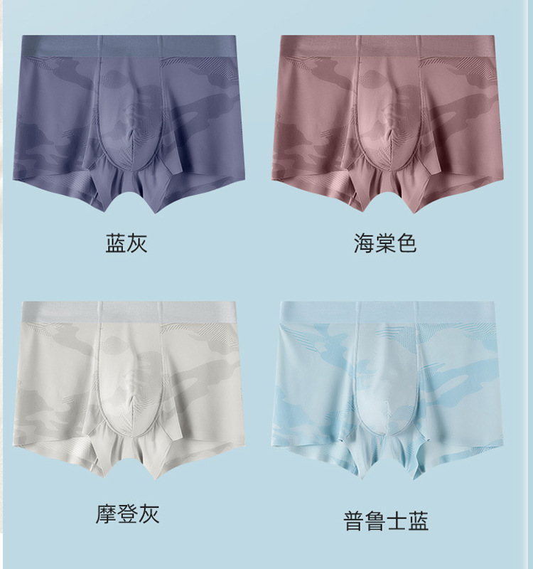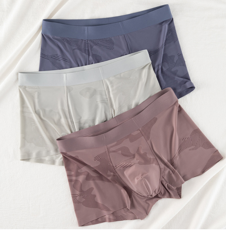 원활한 아이스 실크 남성 속옷 여름 통기성 빠른 건조 인쇄 위장 편안한 미드 웨이스트 복서 남아 복서스토어 가기