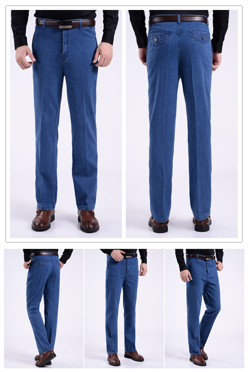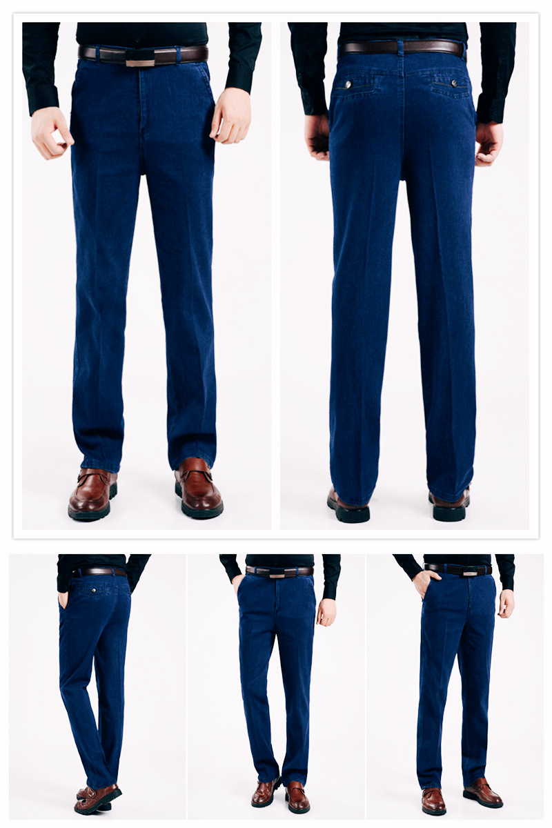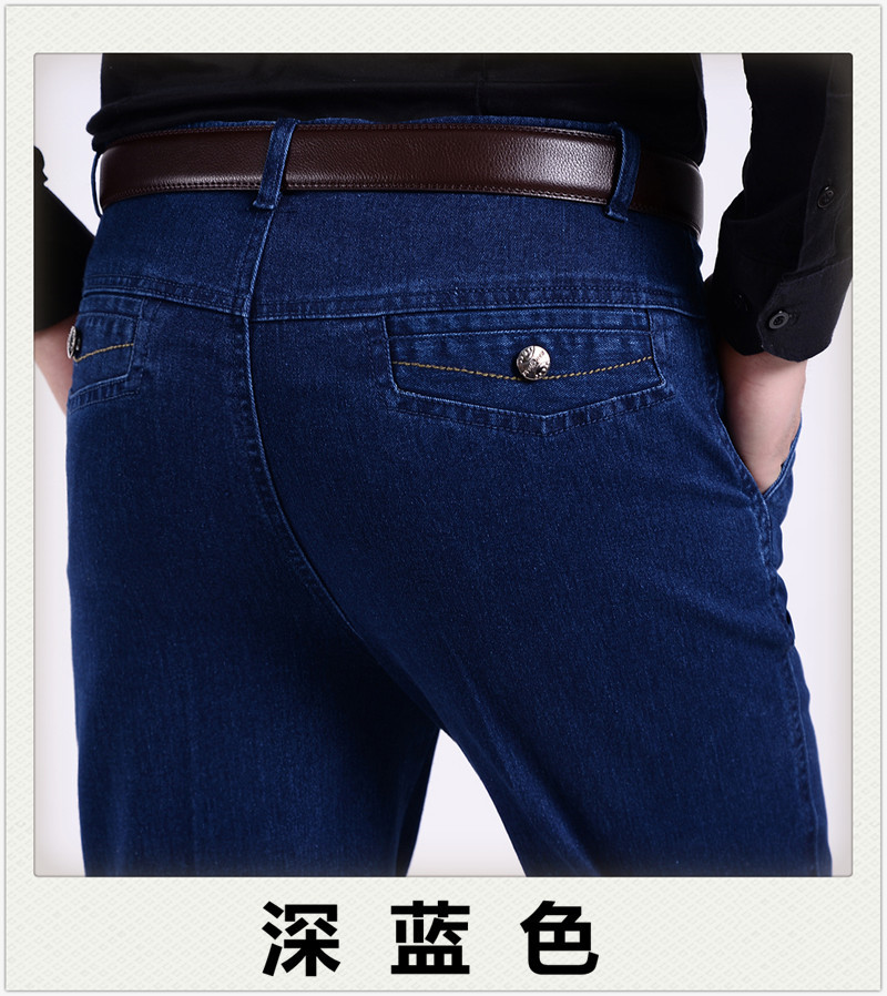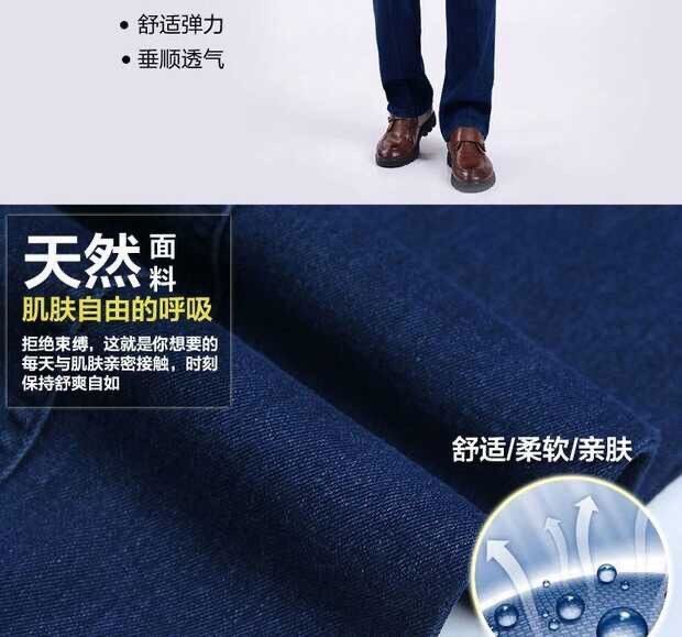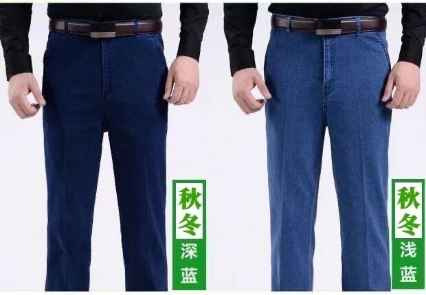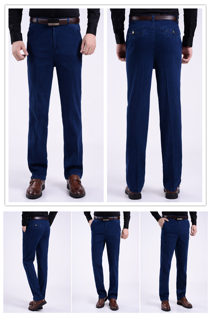 국경 간 남성 청바지 탄성 높은 허리 중년 남성 바지 중년 남성 데님 스트레이트 캐주얼 바지 느슨한스토어 가기