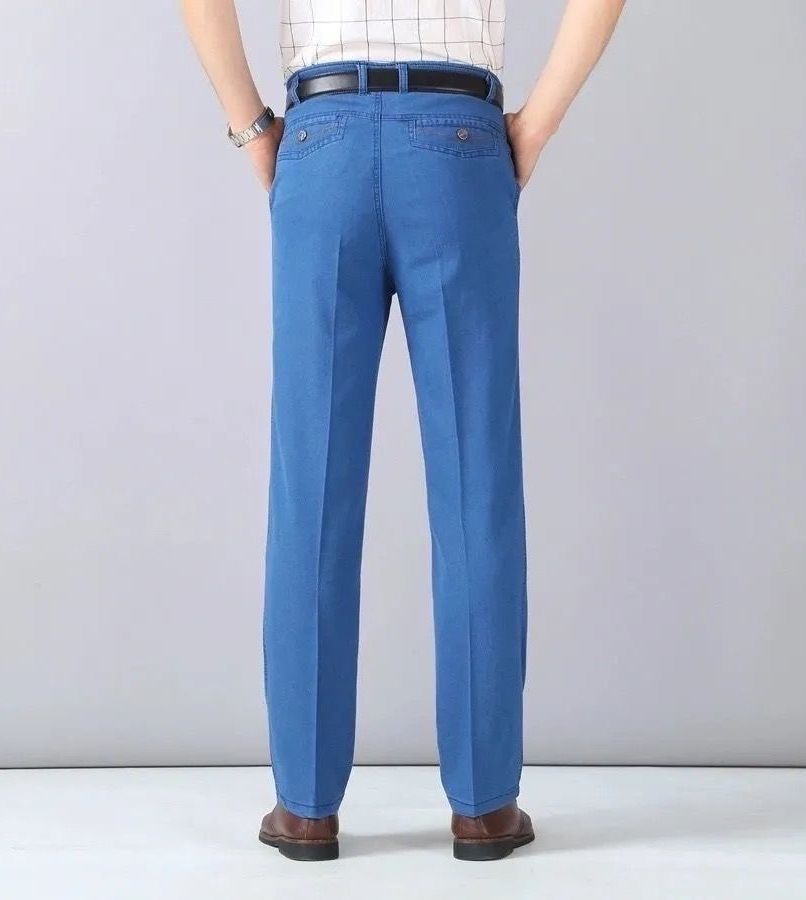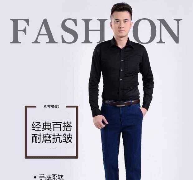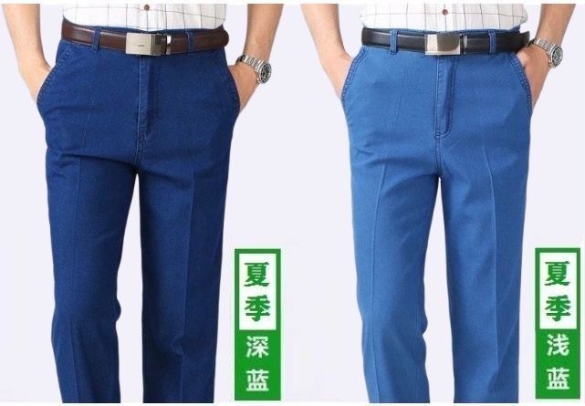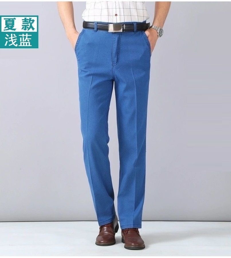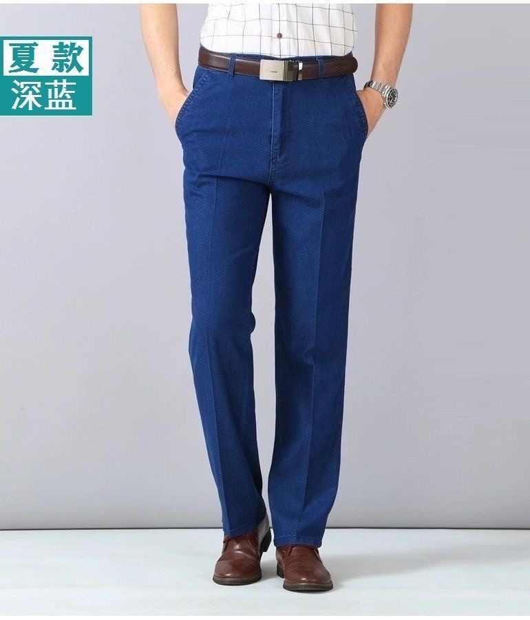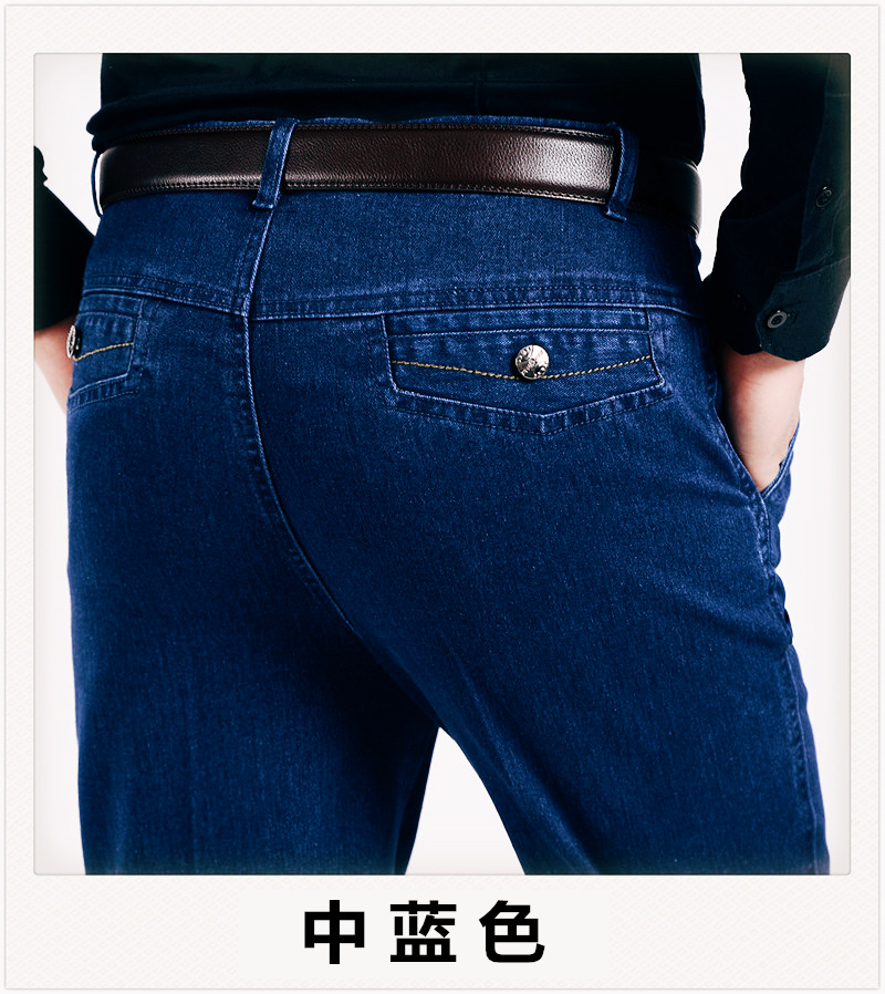 국경 간 남성 청바지 탄성 높은 허리 중년 남성 바지 중년 남성 데님 스트레이트 캐주얼 바지 느슨한스토어 가기