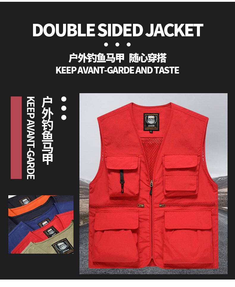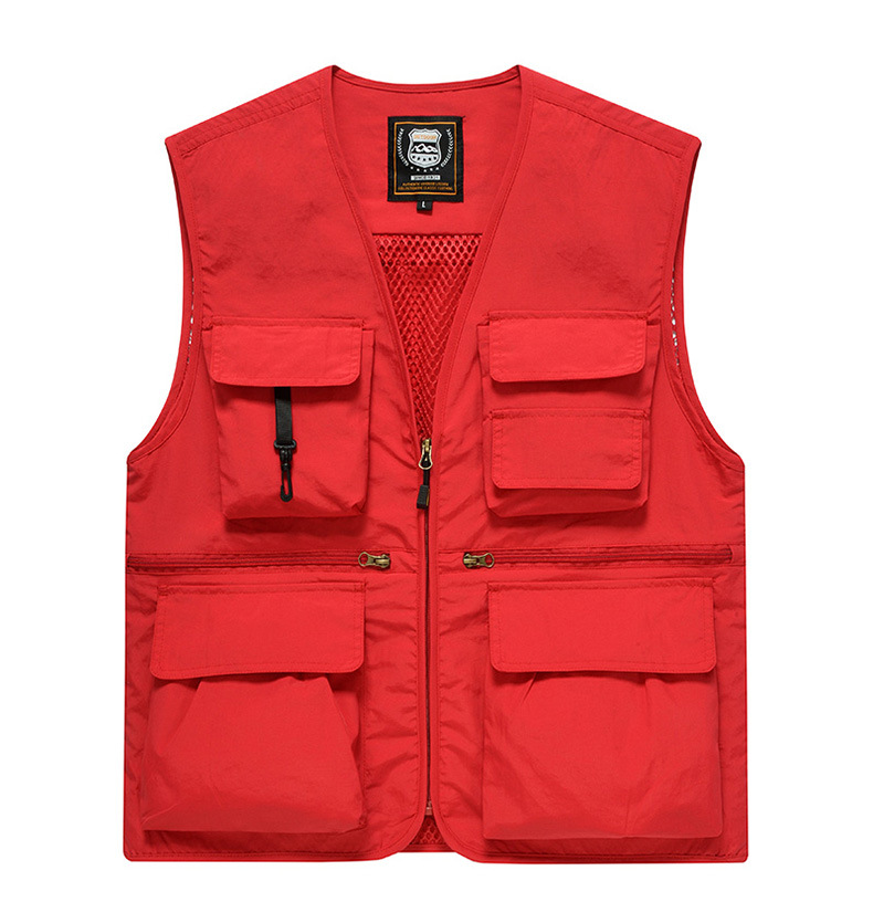 국경 간 광고 낚시 사진 조끼 맞춤 인쇄 로고 툴링 멀티 포켓 리포터 바지 조끼 도매스토어 가기