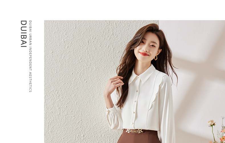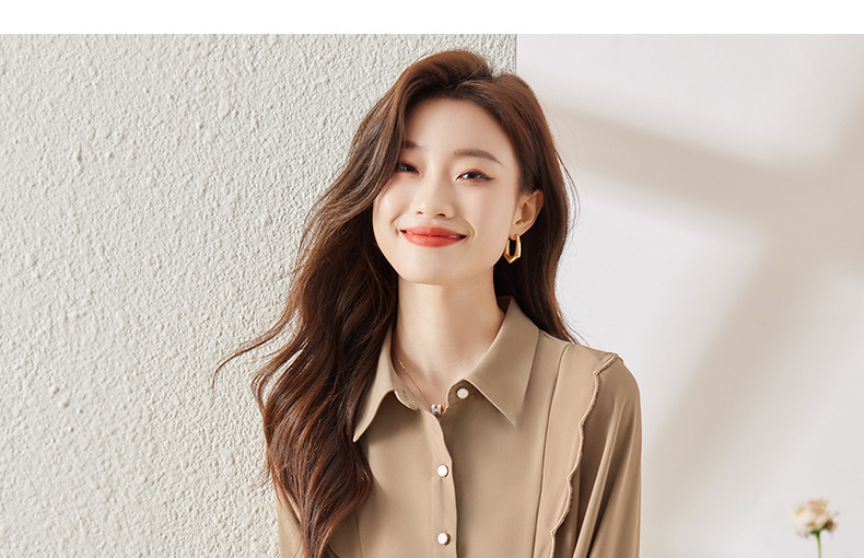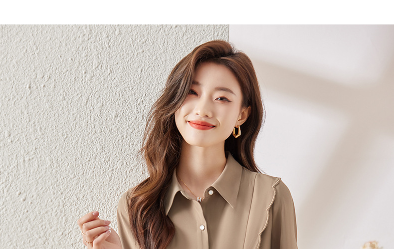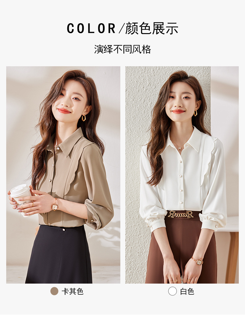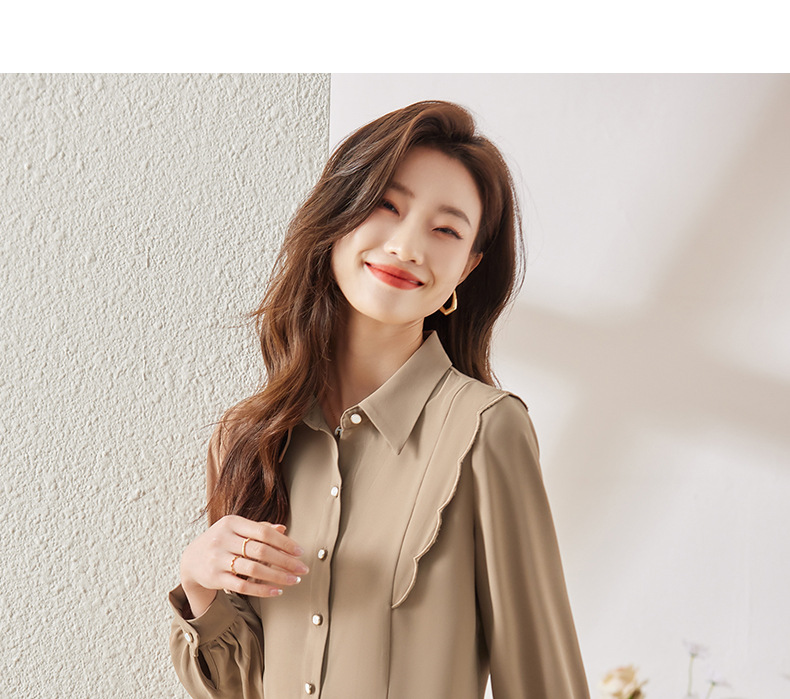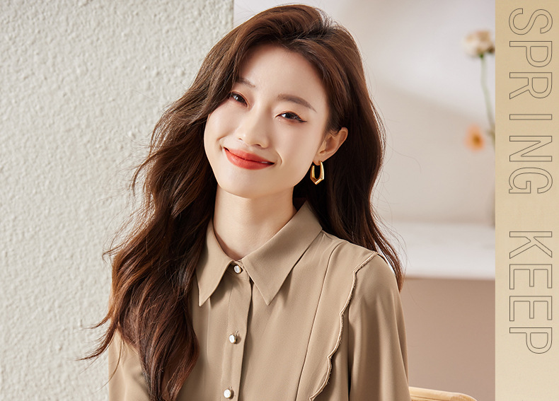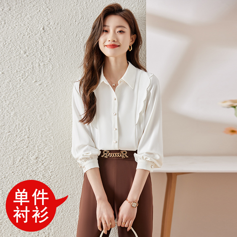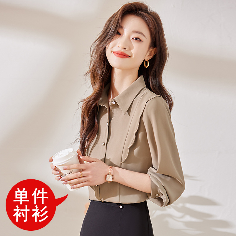프랑스 스타일 간단한 드레이프 긴 소매 쉬폰 셔츠 여자의 봄 2023 새로운 소금 스타일 잡힌 단색 셔츠 재고스토어 가기
