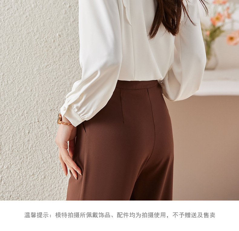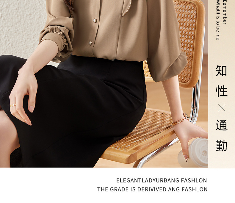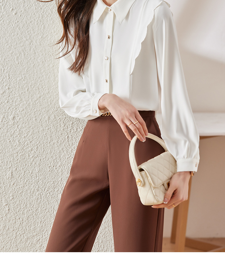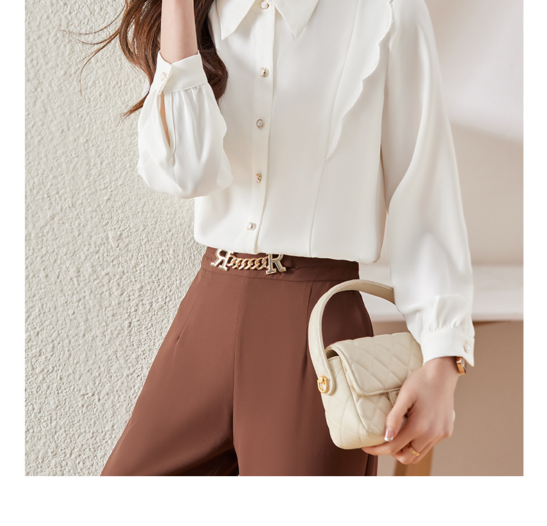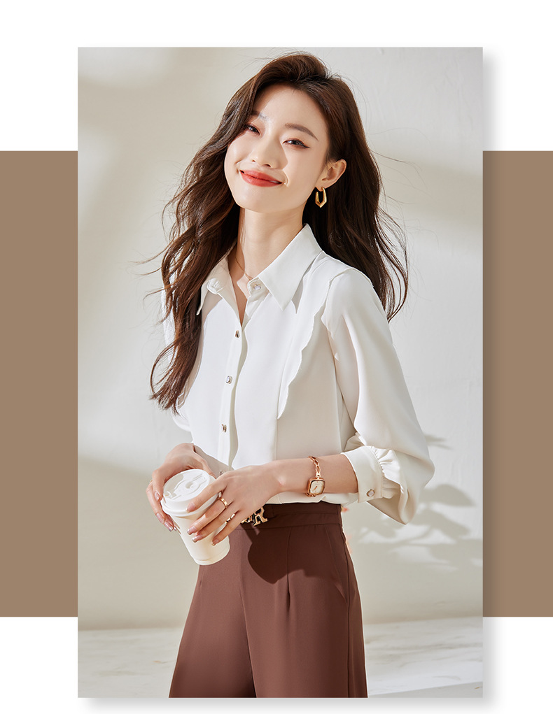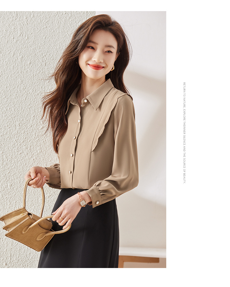 프랑스 스타일 간단한 드레이프 긴 소매 쉬폰 셔츠 여자의 봄 2023 새로운 소금 스타일 잡힌 단색 셔츠 재고스토어 가기