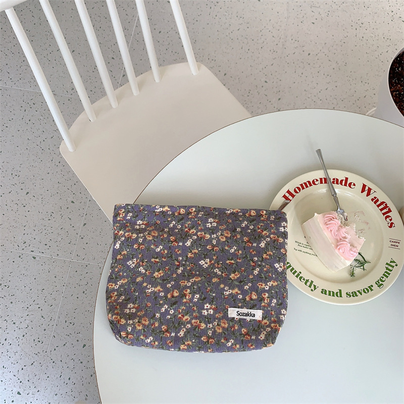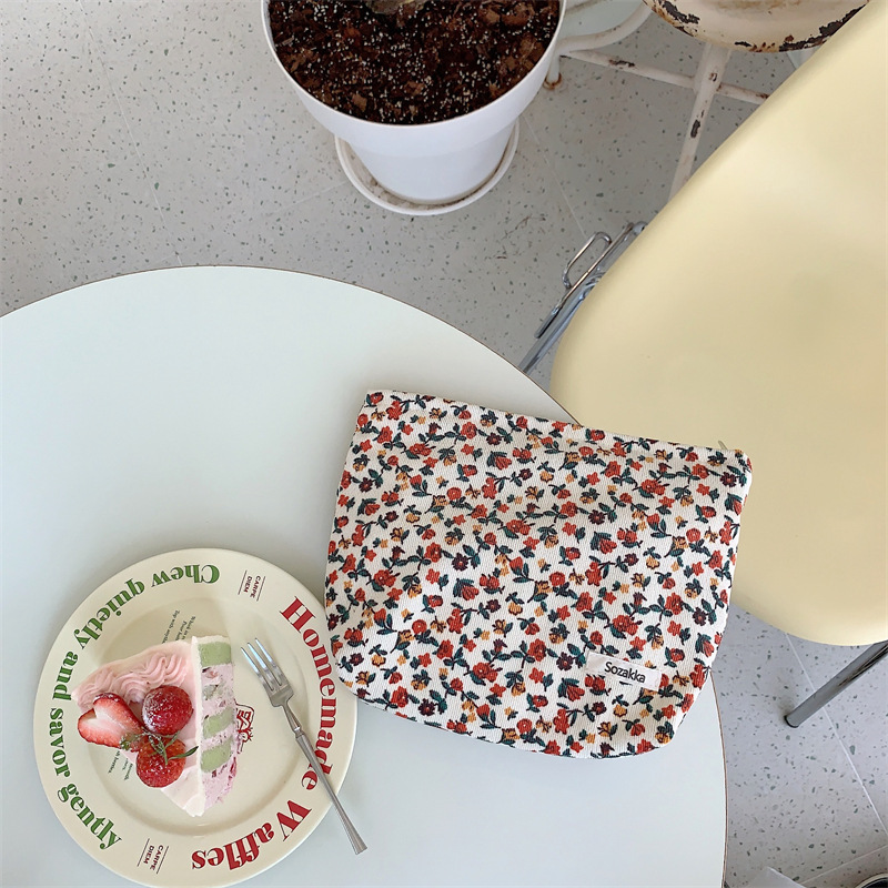 3395 코듀로이 화장품 가방 빈티지 꽃 캐주얼 보관 마무리 가방 일본식 휴대용 세척 가방